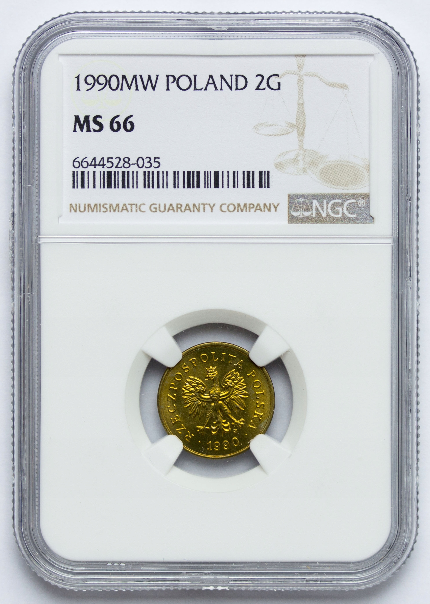 Польща, 2 гроша 1990, NGC MS66