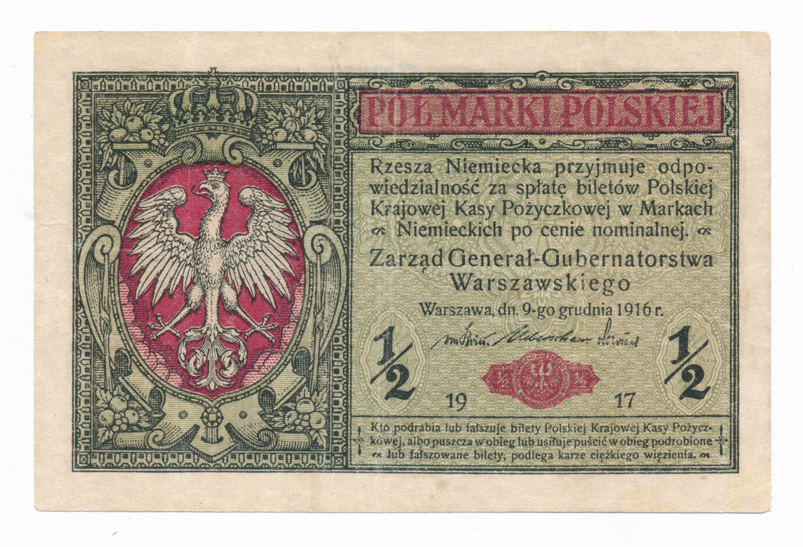 Польша, 1/2 бренда 1916, генерал, серия B, ул. 3+