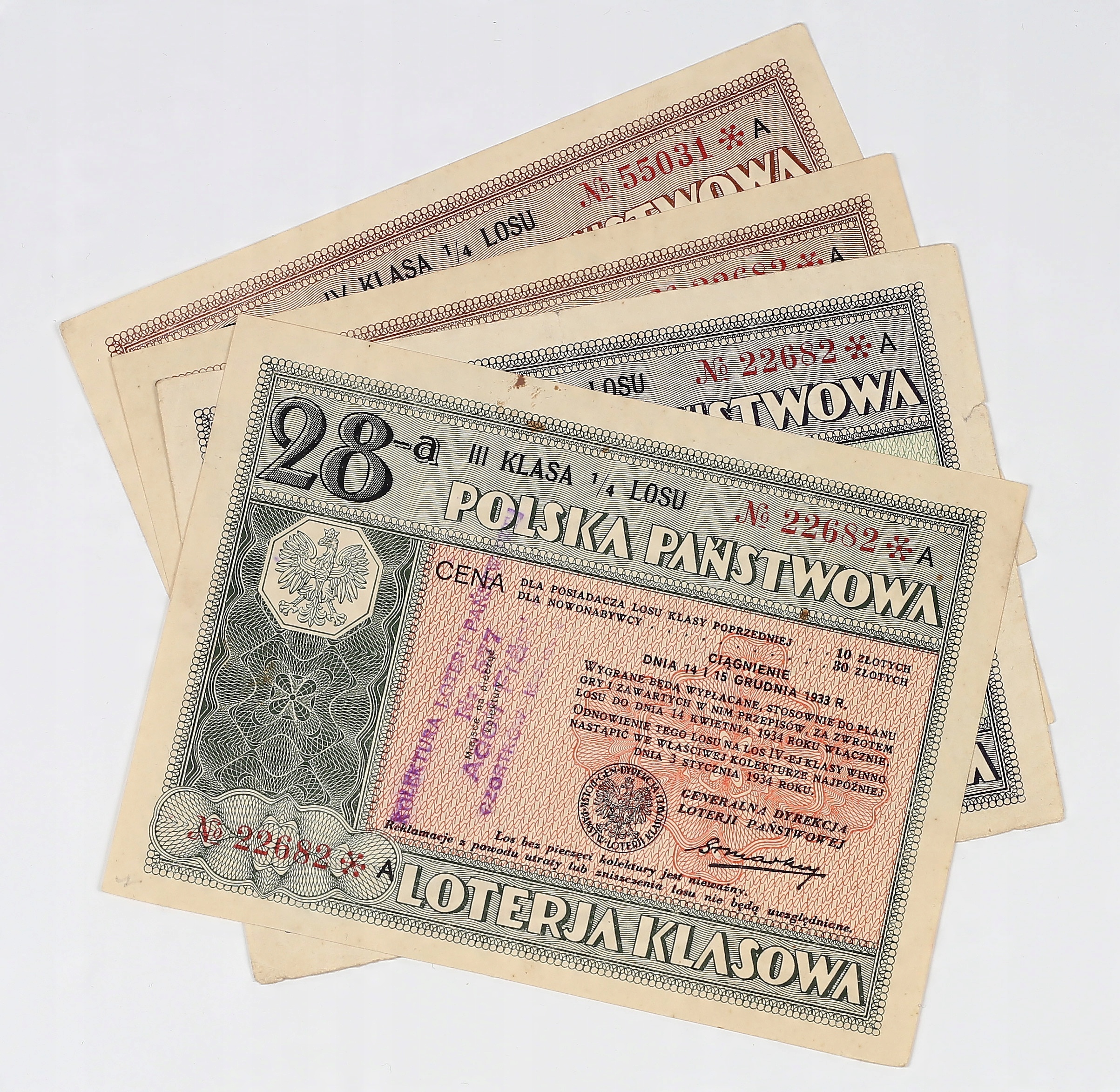 Польща, Лотерея II РП 28 класу, 1934 р., 4 купони