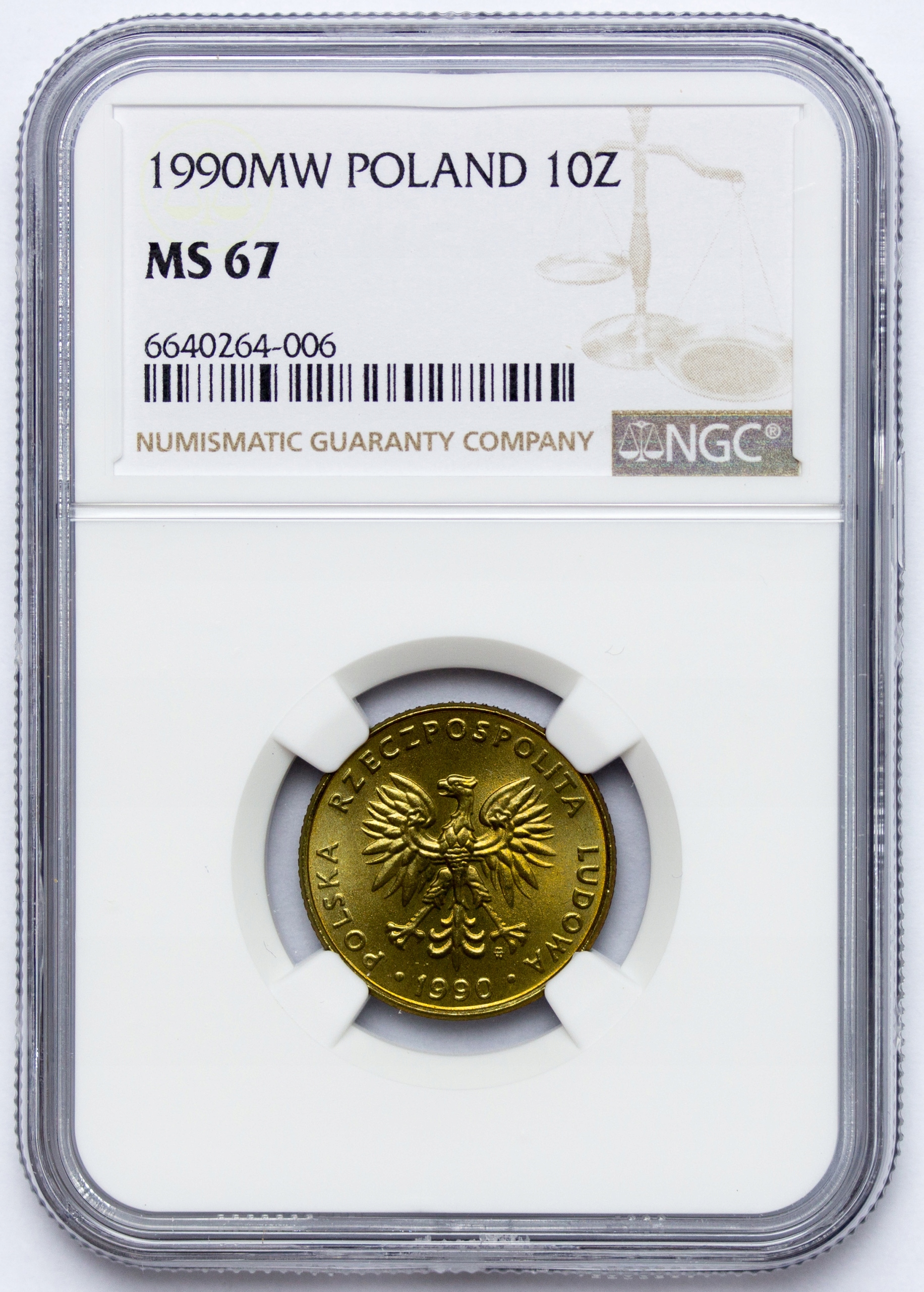 Польща, PRL, 10 злотих 1990, NGC MS67, MAX NOTA