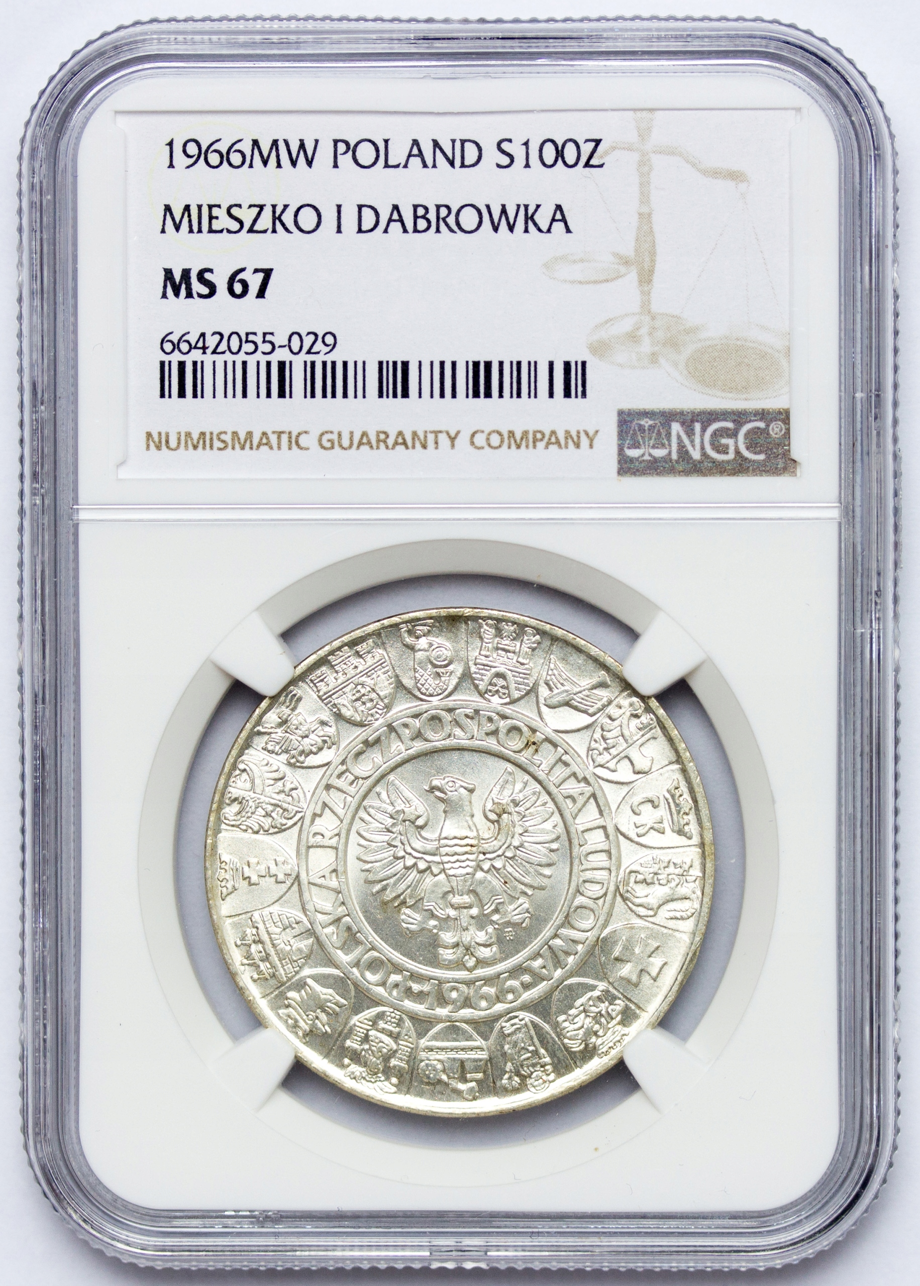 Польща, PRL, 100 злотих 1966, Мєшко та Домбрувка, NGC MS67, КРАСИВИЙ
