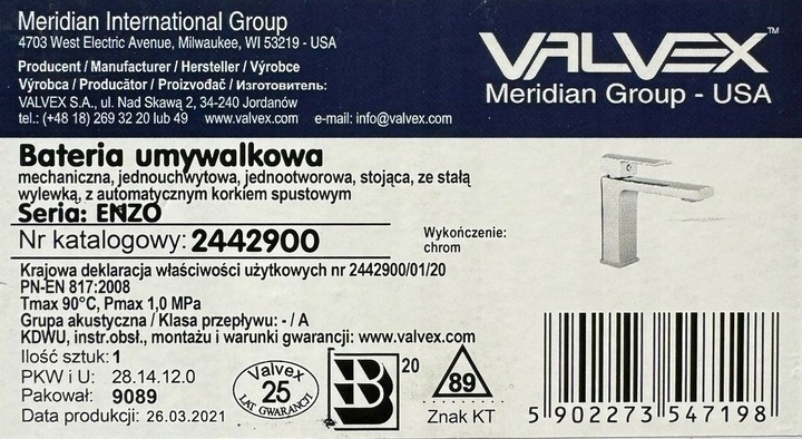 ПОЛЬЩА Душовий змішувач для умивальника VALVEX + сучасна тропічна душова колонка