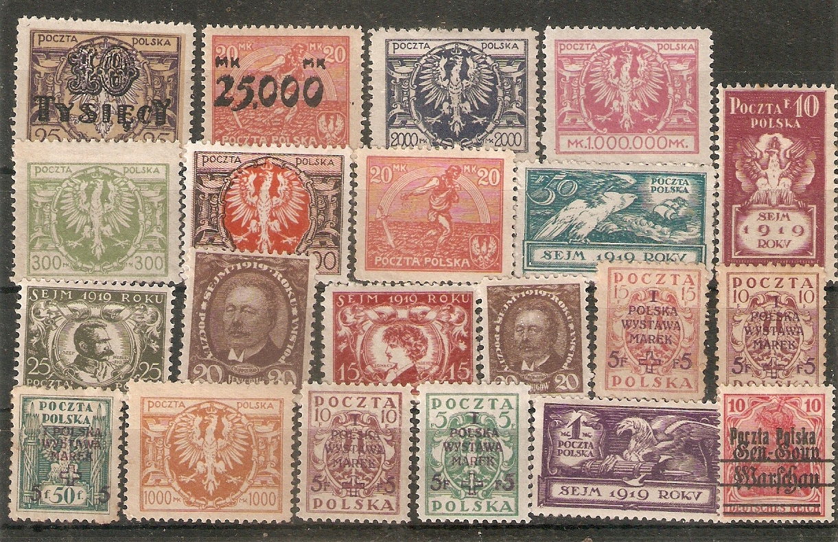 Польша ПМВ - комплект марок на подложке*. В хорошем состоянии