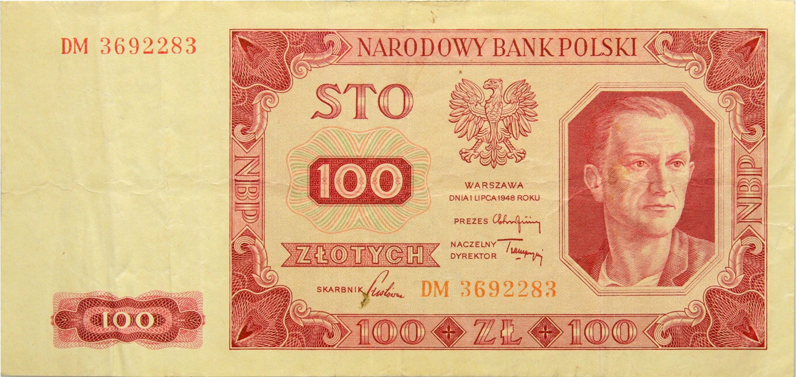 Польща PRL - БАНКНОТА - 100 злотих 1948 р. - РОБІТНИК