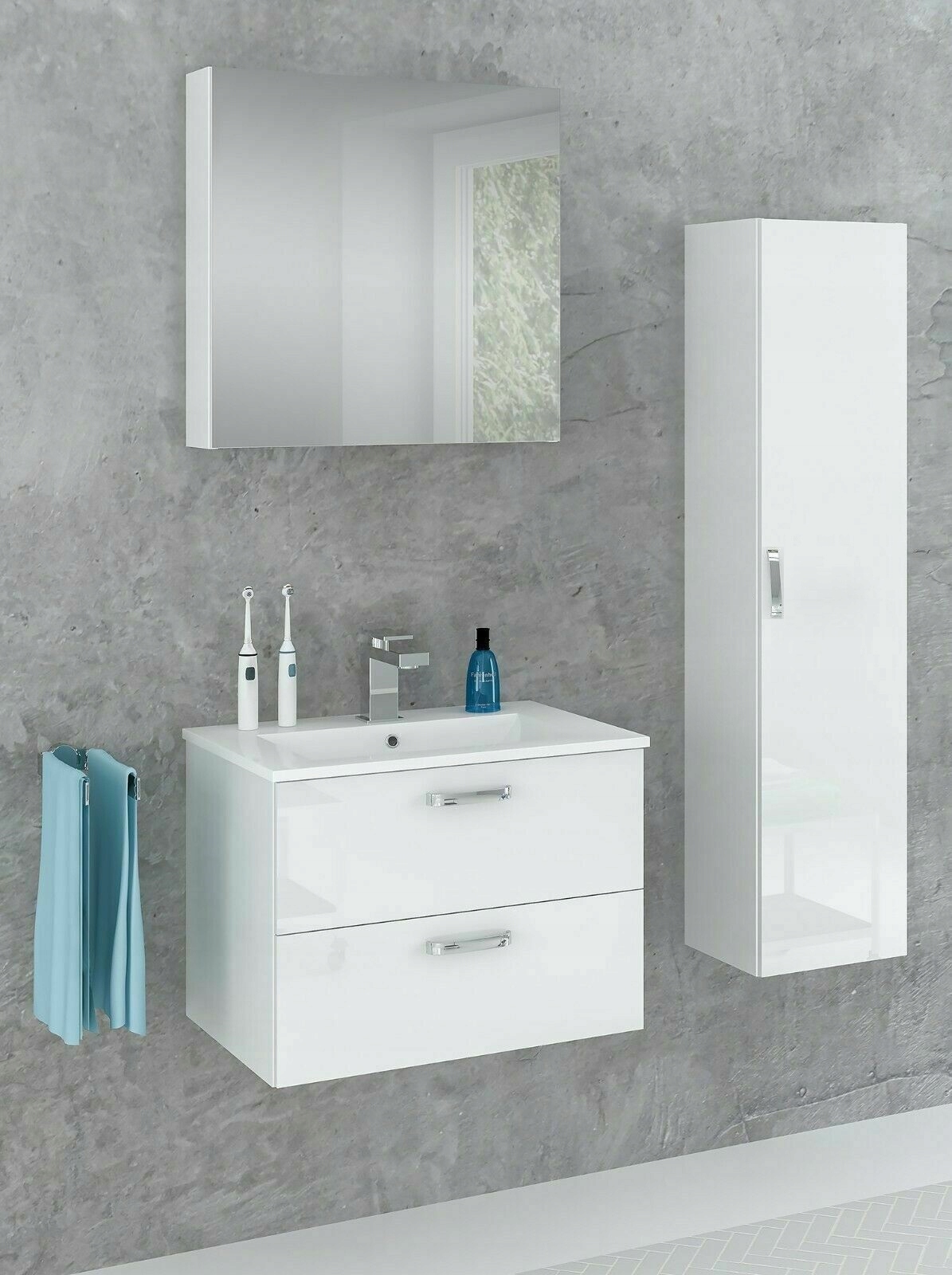 ПОЛЬЩА тумба для ванної кімнати 80см ПІДВІСНА з умивальником БІЛА + комплект ПОСТ