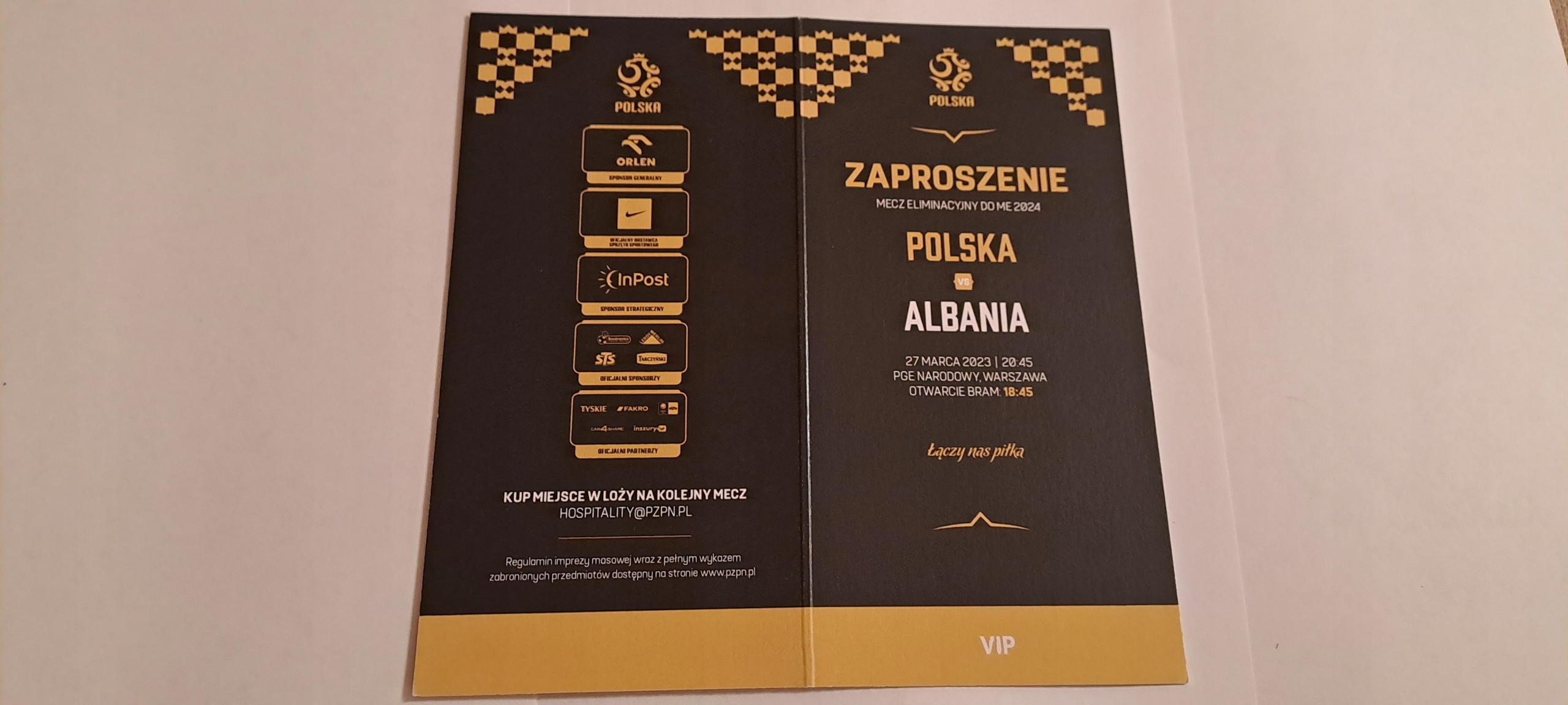 ПОЛЬСЬКА - АЛБАНІЯ 27-03-2023 - КВИТОК ЗАПРОШЕННЯ