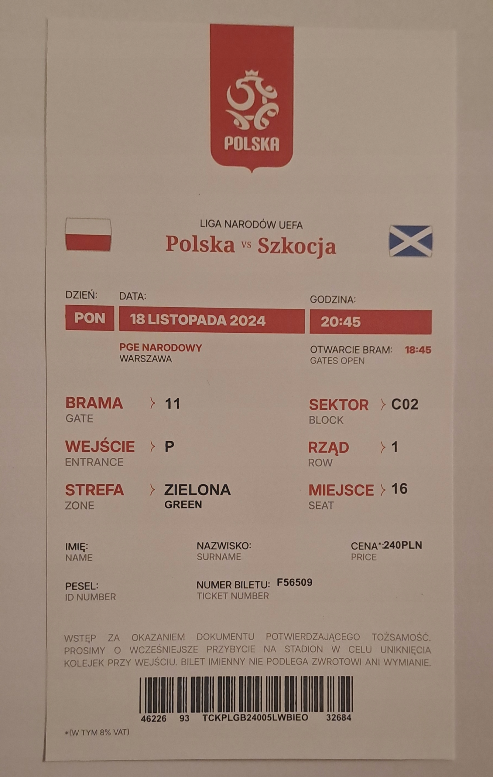 Польша-Шотландия 18-11-2024 Билет