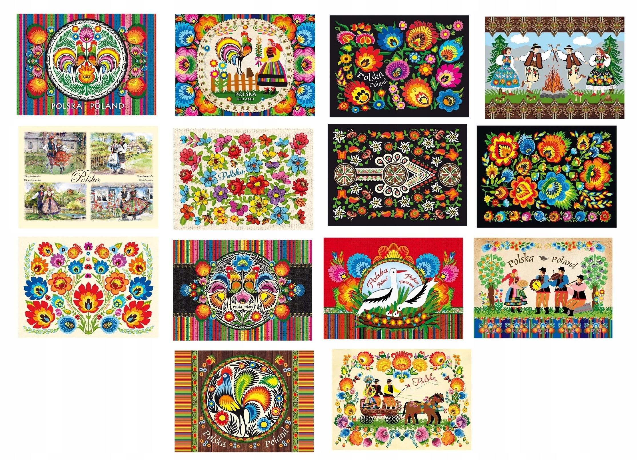 POLSKA FOLKLOR sztuka ludowa widokówki artystyczne 14 szt
