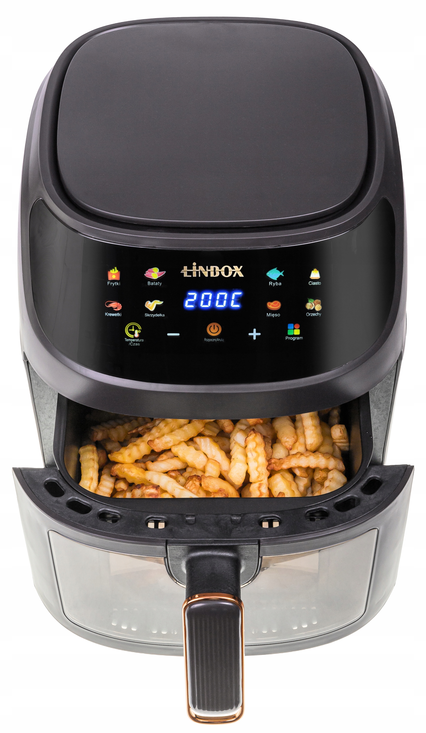Для возможности просмотра готового блюда корзина оснащена прозрачное окно. Когда мы увидим, что блюдо готово, мы сможем выключить фритюрницу раньше.