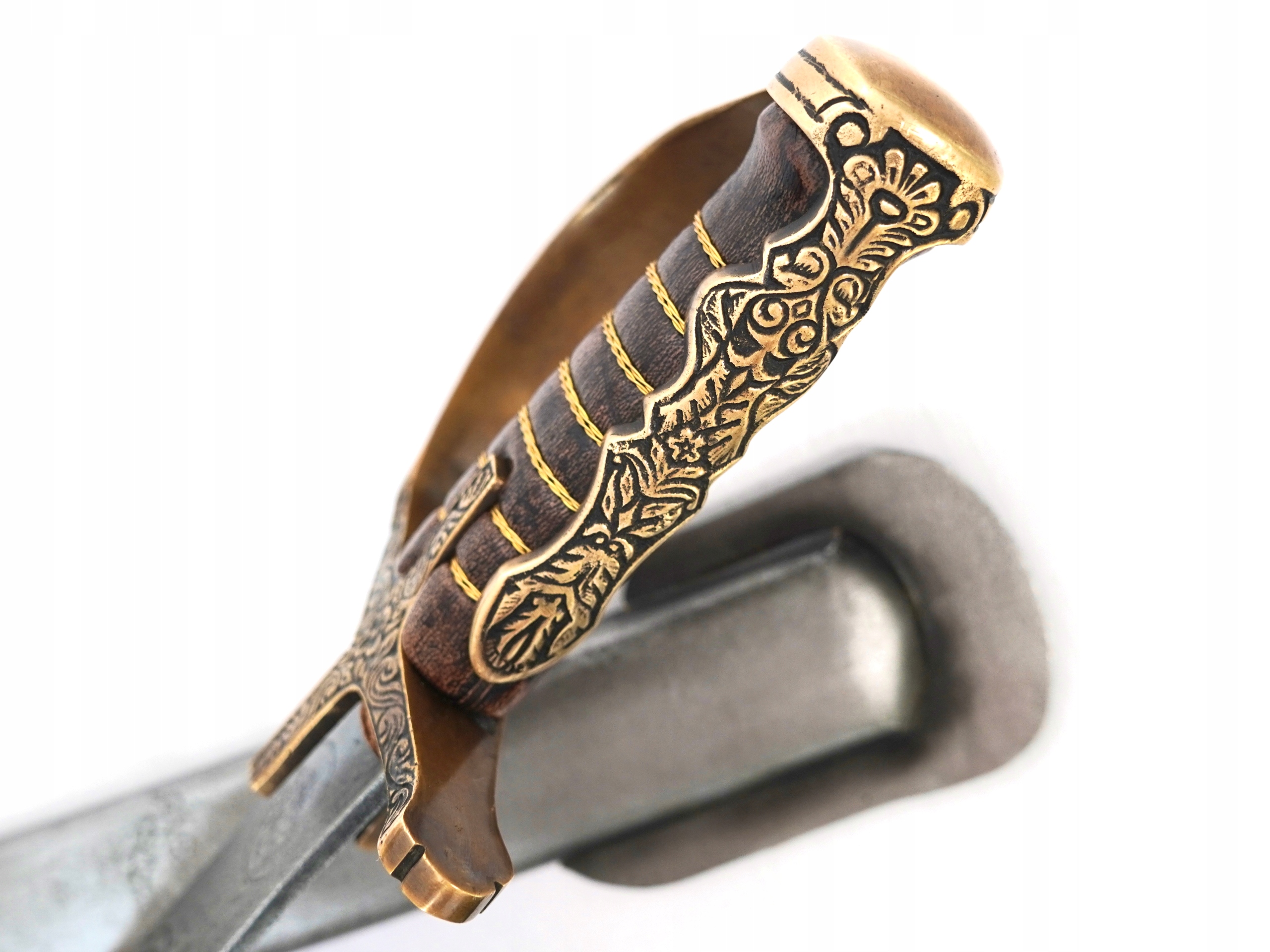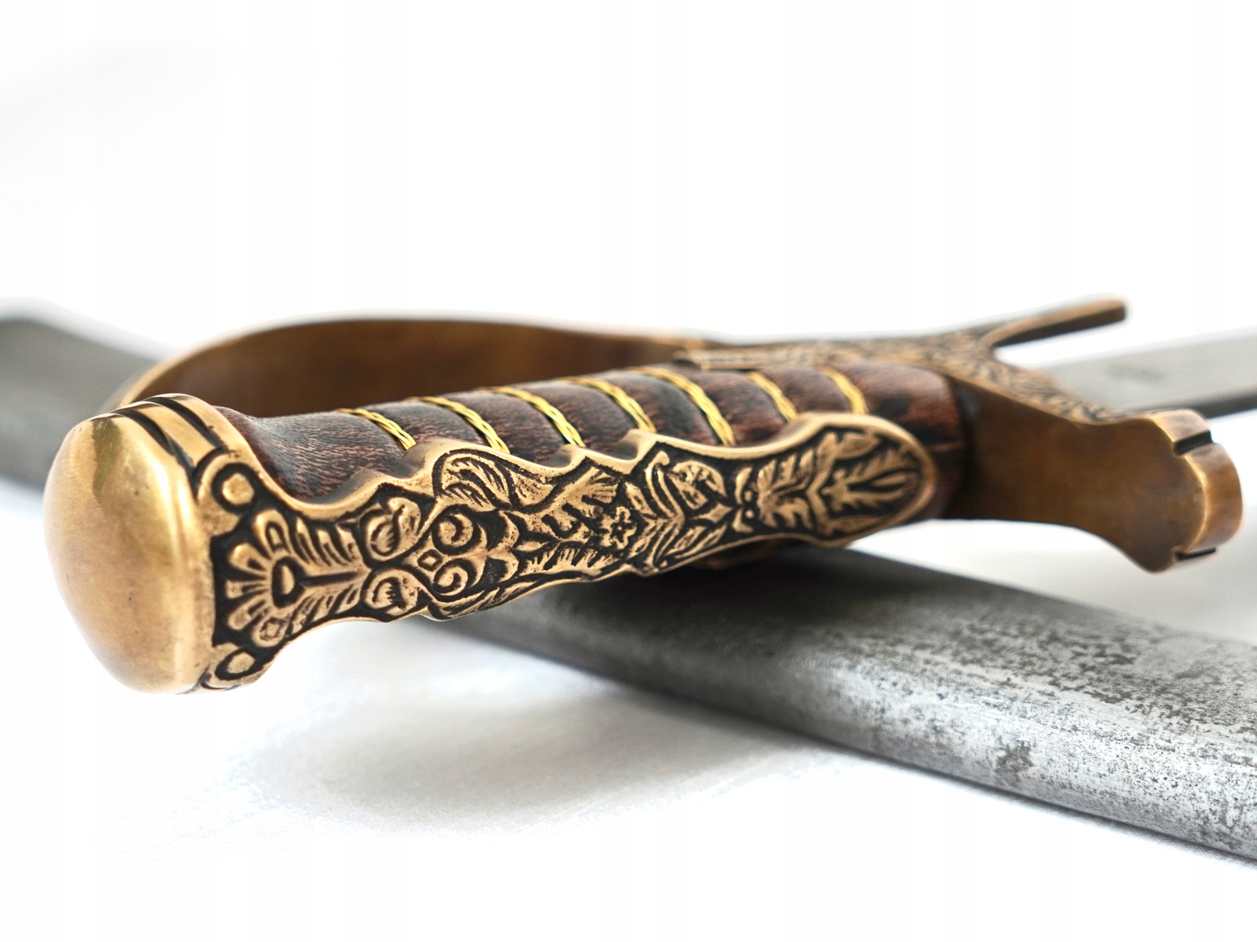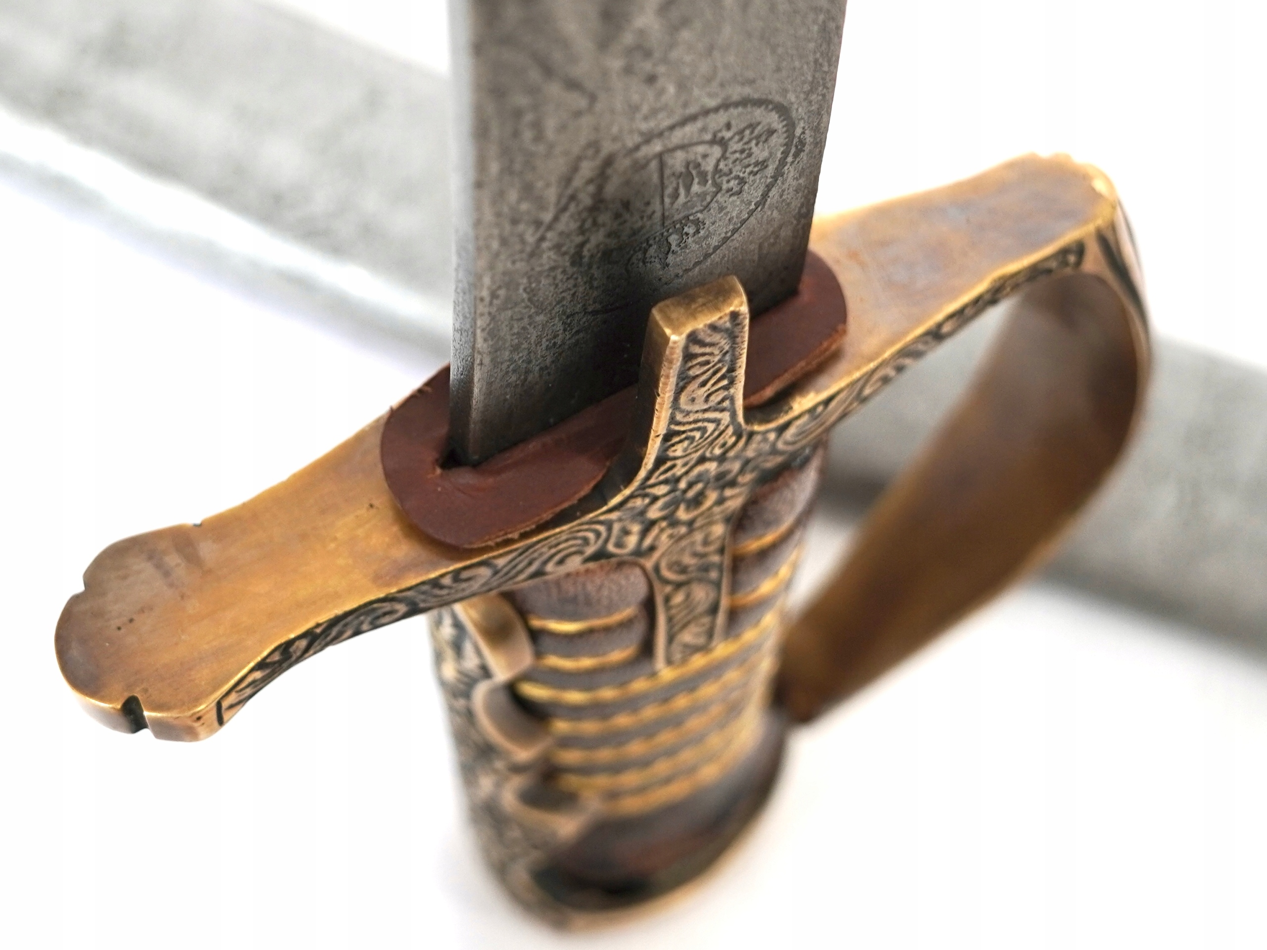 Представляемая нами сабля подписана в месте соединения клинка с рукояткой. Имеется герб с короной с орлом в окружении орнамента, а также год 1863. Клинок изготовлен из высококачественной незакаленной стали. На правой стороне клинка сабли имеется девиз «Боже, храни Польшу». Также есть красивый растительный узор и орел с короной. Ручка деревянная, рифленая, обтянута натуральной кожей, переплетенной латунной тесьмой. Лук изготовлен из латуни, он защищает руку в бою, а также укрепляет саблю. Ножны стальные, с одним пазом и подвижным кольцом, заканчивающимся шпорой-плавником. Вся вещь выполнена в стиле старинной сабли, фабрично состаренной. Держа его в руках, мы можем ощутить истинный дух ушедшей эпохи рукопашных войн.