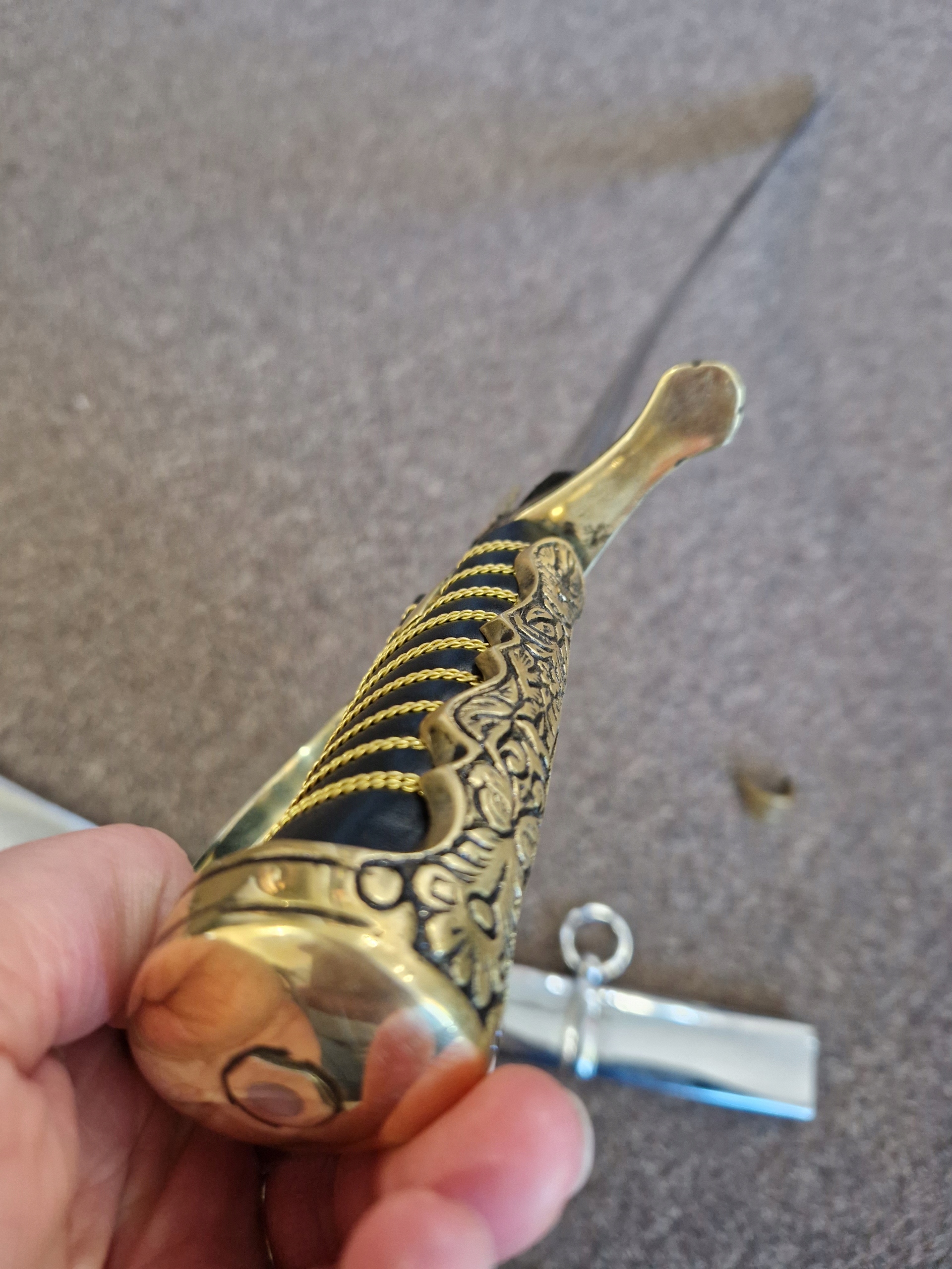- Латунная перекладина б> с бакенбардами укрепляет оружие в самом слабом месте - месте соединения клинка с рукоятью и дополнительно защищает кисть.
