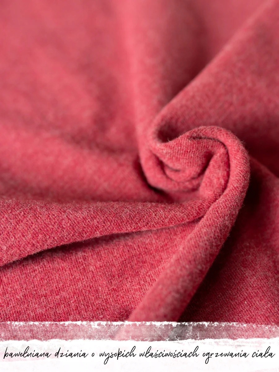 95 % хлопок, 5 % эластан, ткань с начесом. с обеих сторон, высокое ощущение тепла.