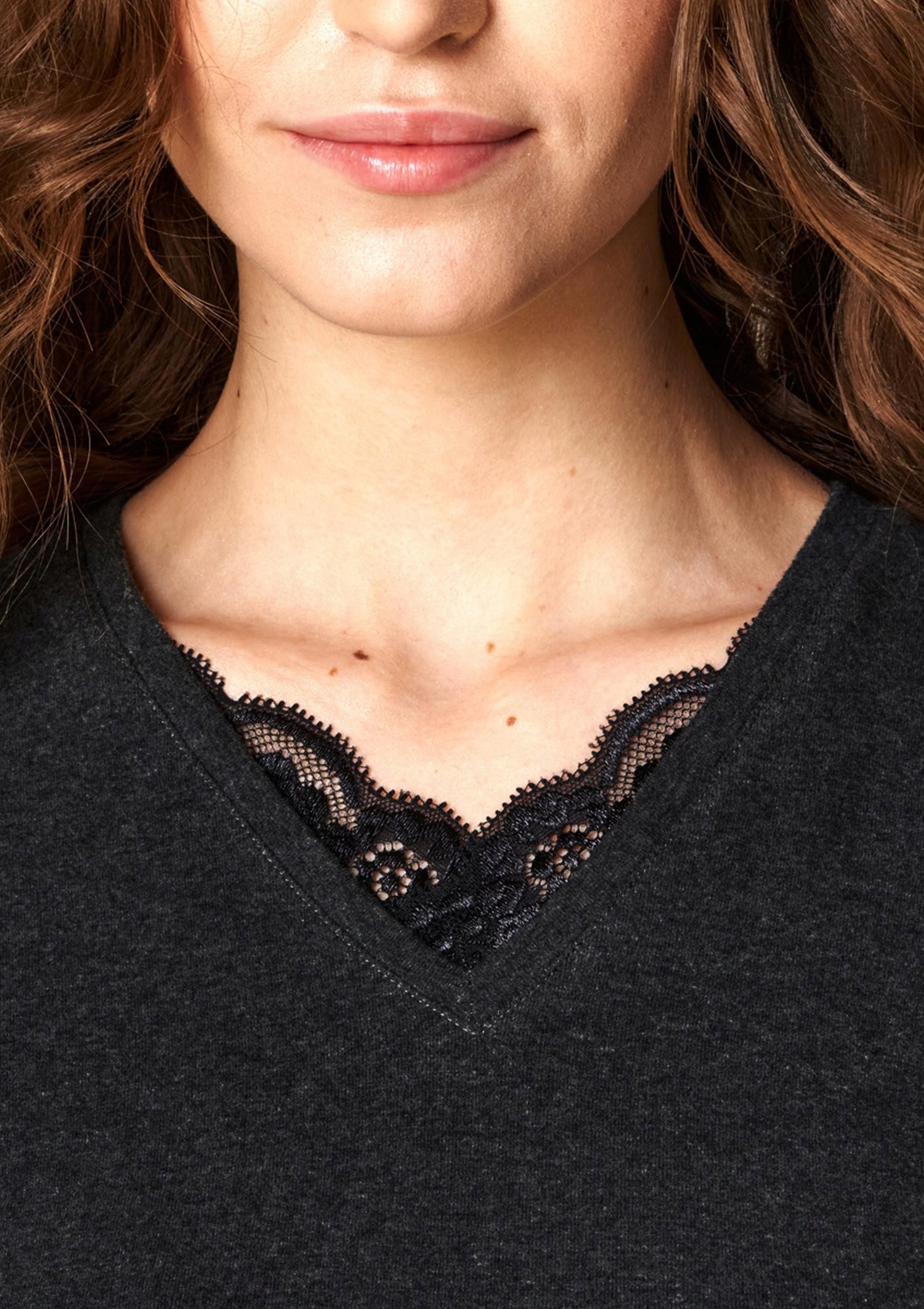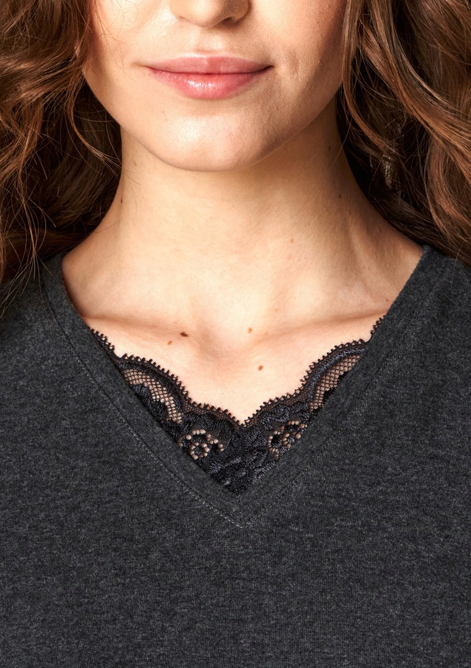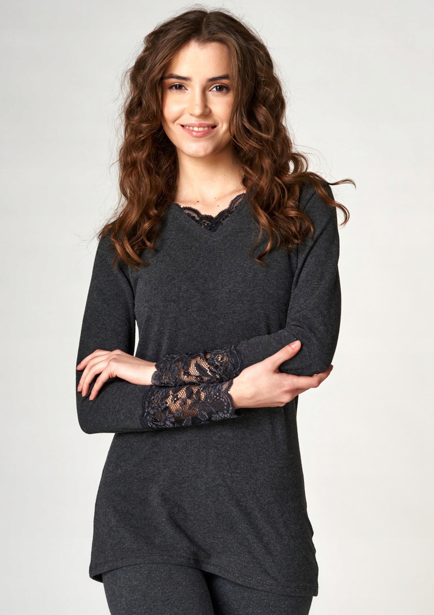 Супер теплая женская футболка с длинными рукавами, отделанная мягким широким кружевом. Изготовлен из хлопкового трикотажа, с начесом с обеих сторон. Полукруглый вырез горловины с кружевом классической длины. Меланжевое, теплое белье из натуральных хлопковых волокон с эластаном. Трикотажное полотно обладает особыми теплоизоляционными и теплоизоляционными свойствами. Нижнее белье Hot Touch мягкое и эластичное. Двусторонний процесс расчесывания хлопка обеспечивает характерную мягкость трикотажного полотна с обеих сторон, обеспечивает циркуляцию воздуха и позволяет коже дышать. Увеличенная плотность 240 г/м2 гарантирует дополнительное тепло, мягкость и долговечность, а также полную свободу движений. Характеристики изделия: кружевная отделка, мягкая, теплая ткань, ощущение облегания и комфорта.
