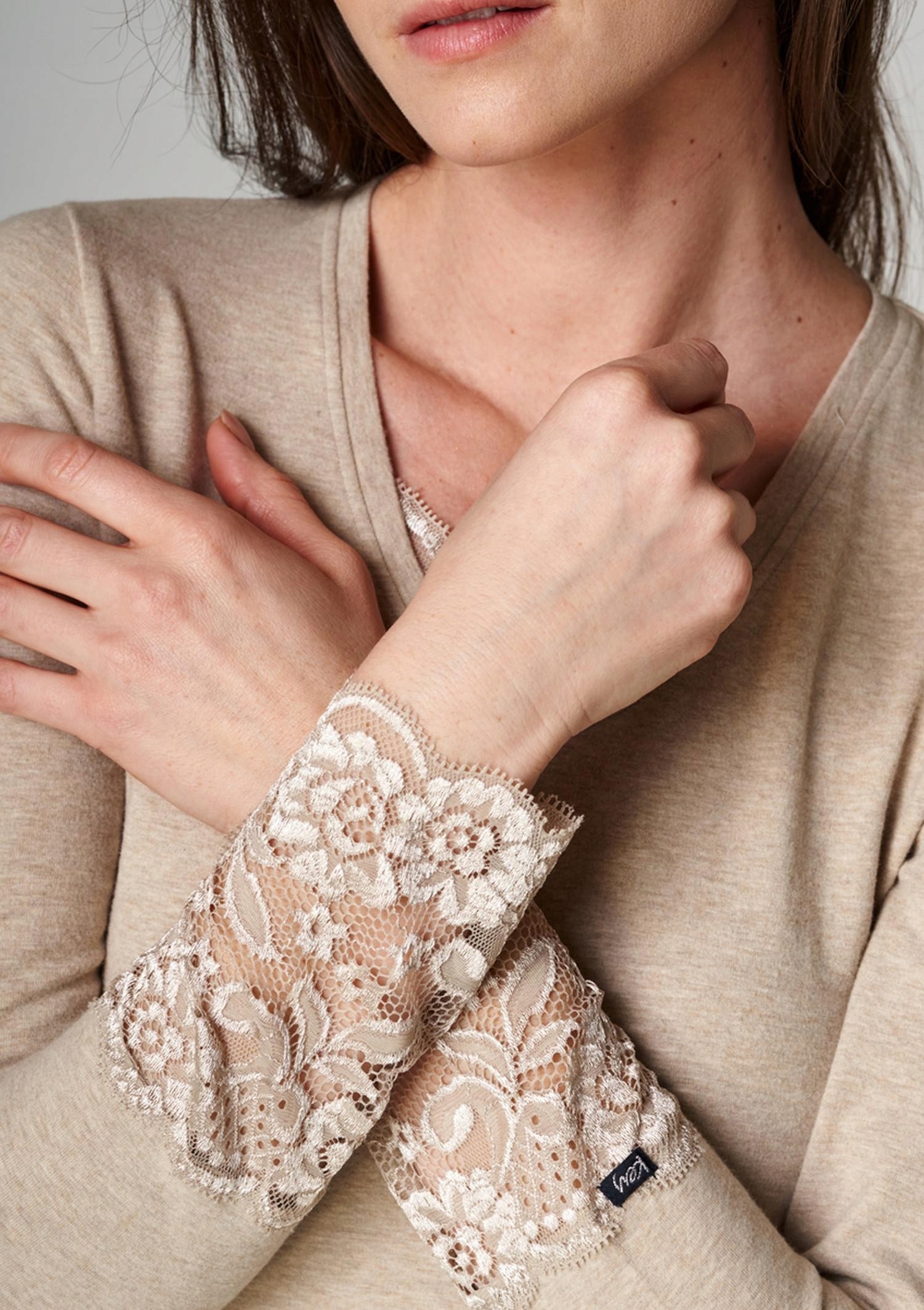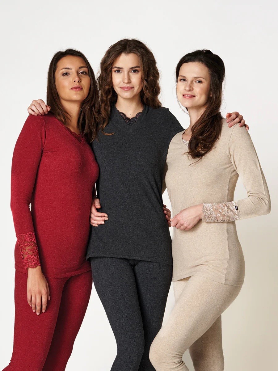Супер теплая женская футболка с длинными рукавами, отделанная мягким широким кружевом. Изготовлен из хлопкового трикотажа, с начесом с обеих сторон. Полукруглый вырез горловины с кружевом классической длины. Меланжевое, теплое белье из натуральных хлопковых волокон с добавлением эластана. Трикотажное полотно обладает особыми теплоизоляционными и теплоизоляционными свойствами. Нижнее белье Hot Touch мягкое и эластичное. Двусторонний процесс расчесывания хлопка обеспечивает характерную мягкость трикотажного полотна с обеих сторон, обеспечивает циркуляцию воздуха и позволяет коже дышать. Увеличенная плотность 240 г/м2 гарантирует дополнительное тепло, мягкость и долговечность, а также полную свободу движений. Характеристики изделия: кружевная отделка, мягкая, теплая ткань, ощущение обволакивания и комфорта.