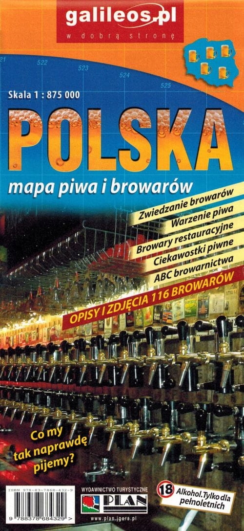 Автомобильная и туристическая карта Польши, посвященная любителям пива. На карте показаны пивоварни, описание которых находится на оборотной стороне листа. Кроме того, на карте представлен ряд информации по пивной тематике. Также было описание процесса пивоварения и представление стилей пива.