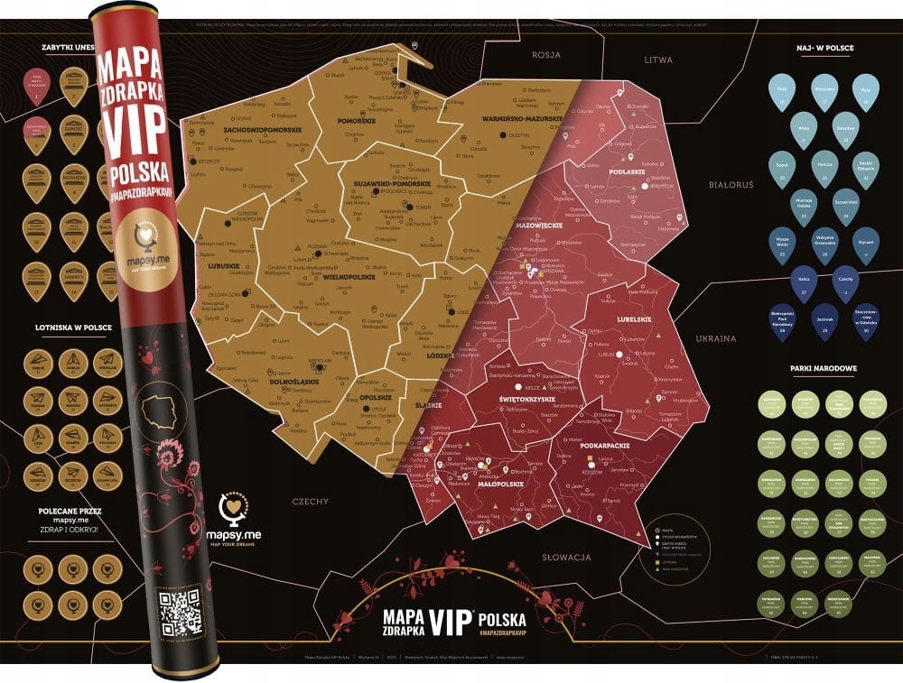 Скретч-карта Польши позволяет вам заново открыть для себя нашу родину. Основная информация, полезная для путешественников, указана под скретч-боксом.