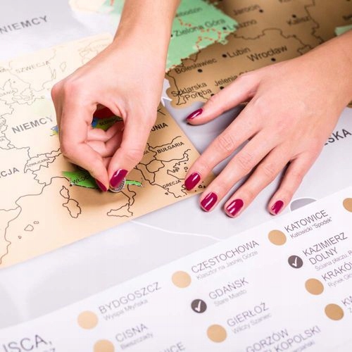 Карта исследователя — Польша, которая представляет всю страну в виде большой скретч-карты, идеально подходит для развития вашей страсти к путешествиям — независимо от того, предпочитаете ли вы просто провести пальцем по карте или вообще посетить интересные места. Найдите польские города, в которых вы уже побывали, и спланируйте следующую поездку в те места, которые хотите увидеть в следующий раз. В этом вам поможет список мест для посещения внизу карты – благодаря ему вы не пропустите ни одного интересного места или туристической достопримечательности в Польше, которые стоит посетить. Вы также можете вычеркнуть европейские страны, в которых вы были, ведь рядом с картой Польши есть еще и уменьшенная карта Европы!