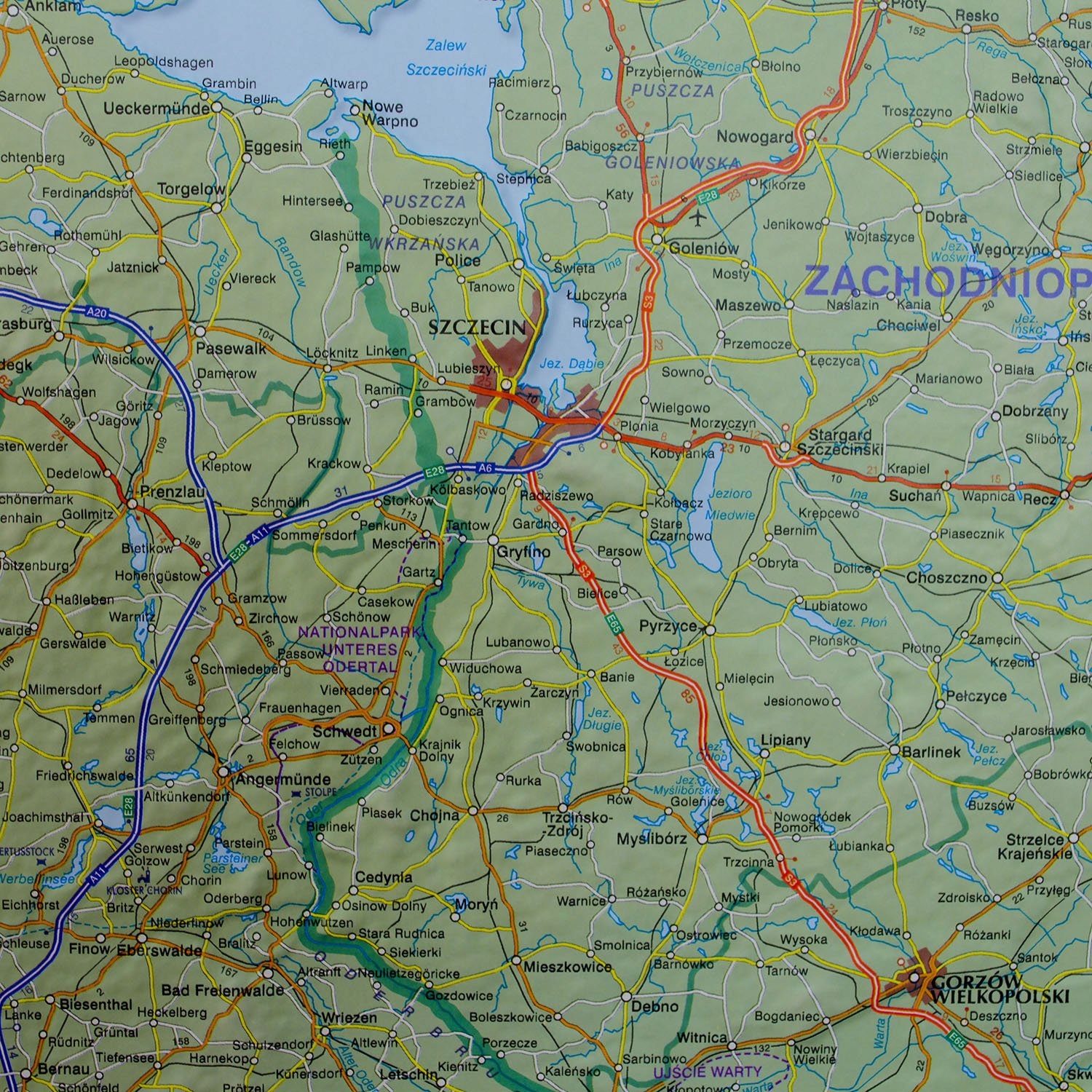 Трехмерная карта дорог Польши масштабом 1:800 000, опубликованная Global Map в классических расцветках.