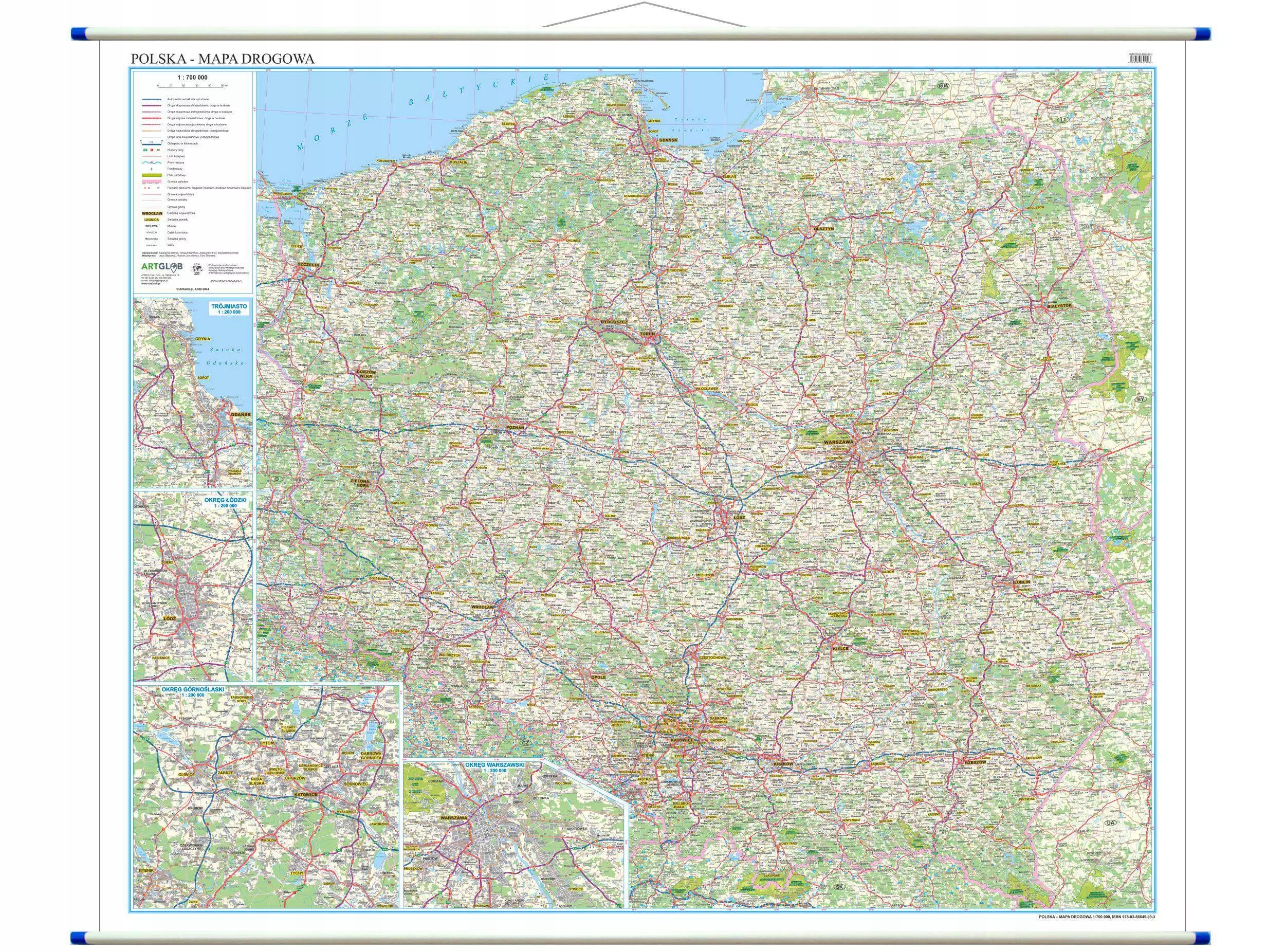 Польская настенная карта издания 2025 Дороги artglob