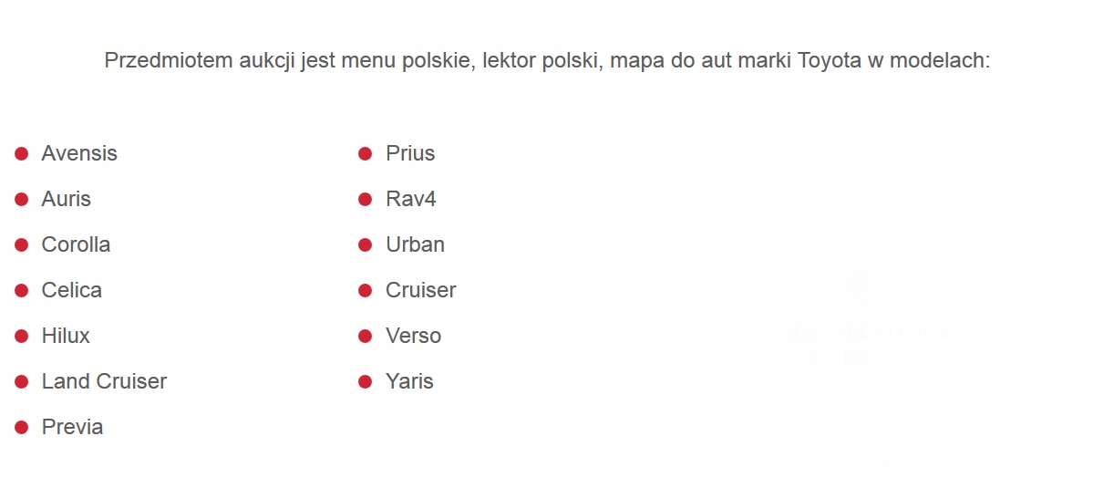 Просматривая «Польская меню Навигация Lexus Toyota Map Lector», вы можете быть уверены, что данный товар из каталога «Программное обеспечение» будет доставлен из Польши и проверен на целостность. В цене товара, указанной на сайте, учтена доставка из Польши. Внимание!!! Товары для Евросоюза, согласно законодательству стран Евросоюза, могут отличаться упаковкой или наполнением.