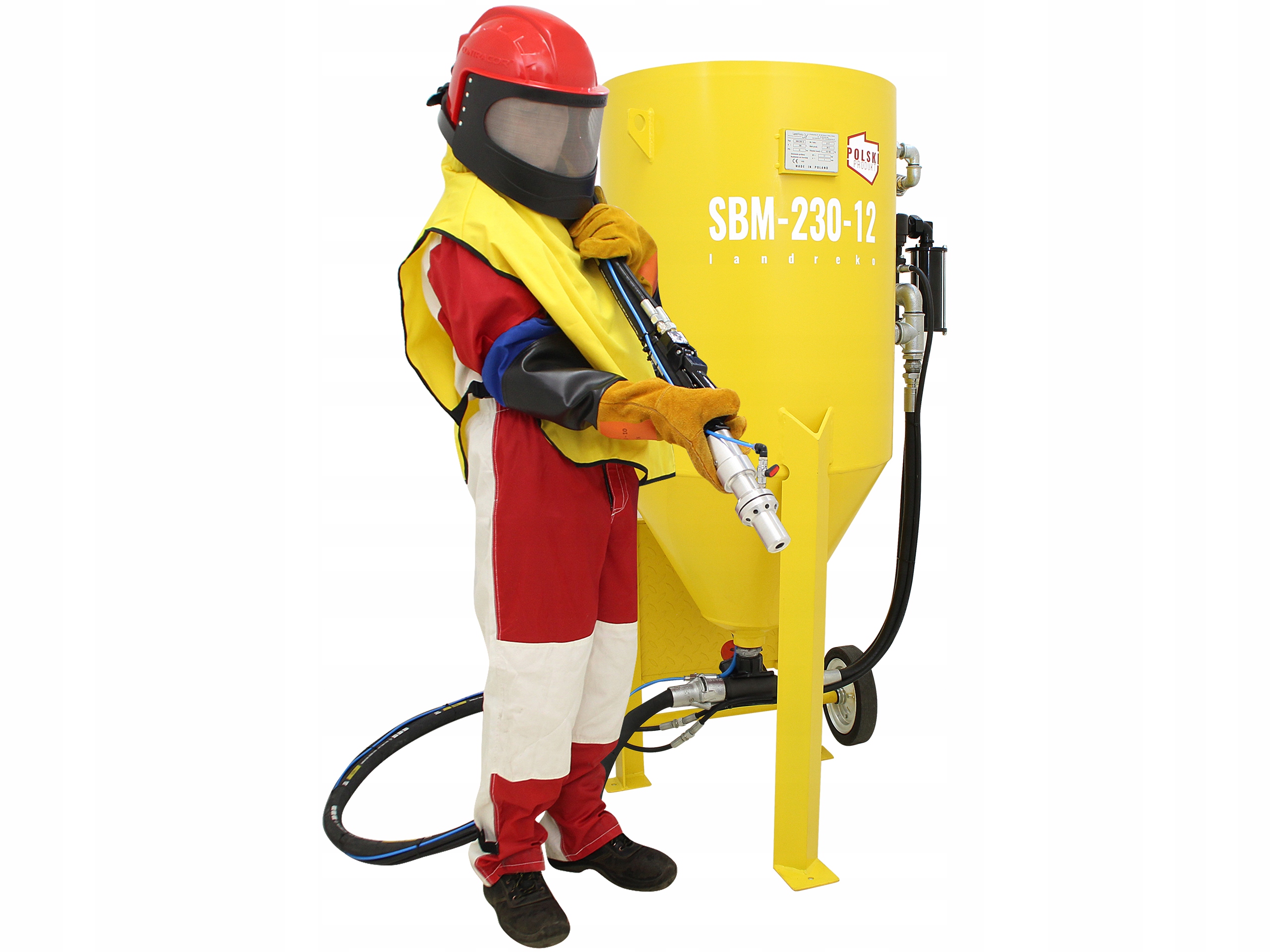 Предлагаемый многофункциональный абразивоструйный аппарат – это профессиональное, безопасное и современное устройство от польского производителя. Дробеструйная машина оснащена напорным резервуаром с коническим дном для облегчения скольжения материала и контрольным рычагом, позволяющим быстро опорожнять абразив из резервуара. Высококачественный немецкий абразивный клапан Macro+ отличается повышенной механической прочностью и стойкостью к истиранию выше среднего по сравнению со стандартными клапанами, устанавливаемыми в пескоструйные машины конкурирующих компаний. Управление дробеструйной машиной легко и безопасно благодаря расположению рукоятки управления на конце рабочего троса. Несомненным преимуществом такого решения является возможность прерывания работы устройства оператором, непосредственно выполняющим процесс пескоструйной обработки, что продиктовано новейшими нормами охраны труда и техники безопасности. Клапанная конструкция исключает необходимость использования дорогих мембран и поршней.