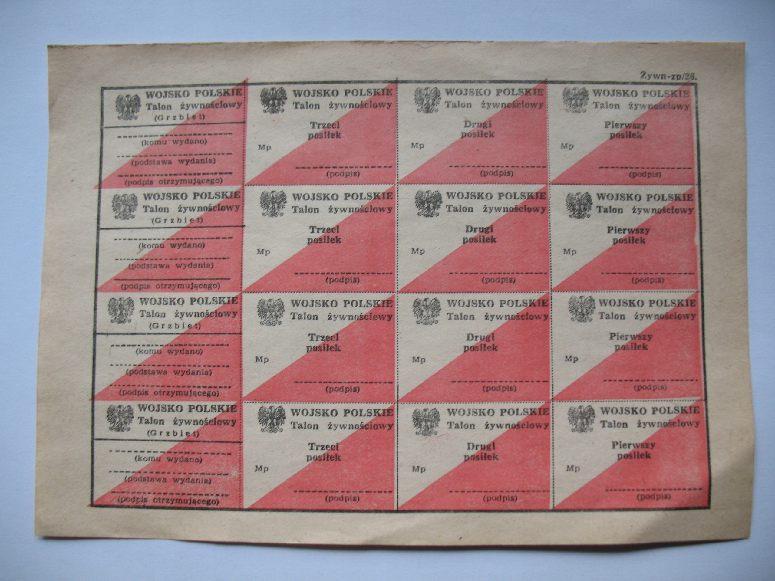 Старый, оригинальный продовольственный ваучер польской армии. Оригинал Знакомство: 60/70 - Строительные знаки 20 -го века. Размеры: 147 x 210 мм. Поведение: по моему мнению +дБ, легкая грязь, надзор, все видно на сканировании. Не стесняйтесь делать покупки.