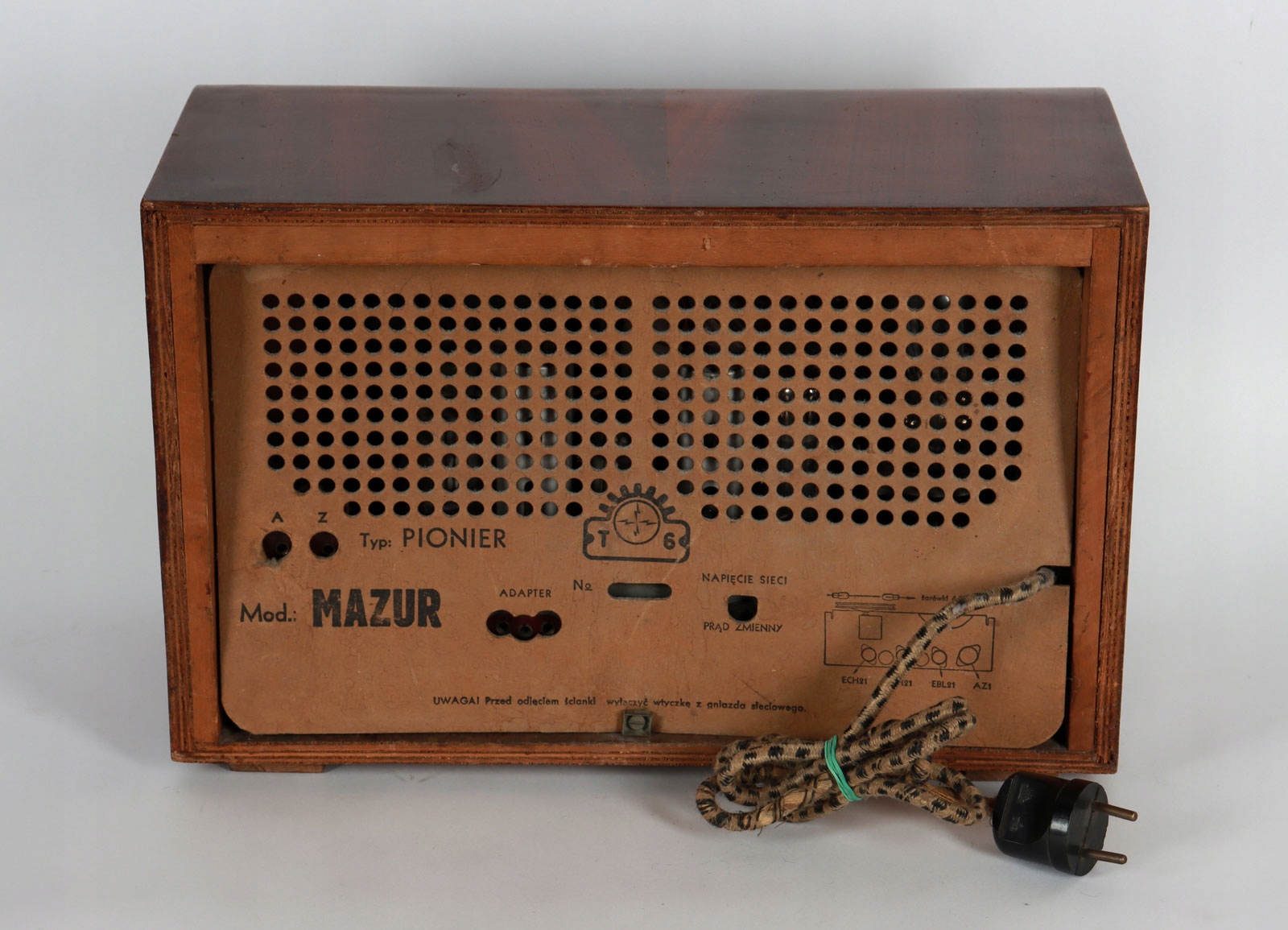 приемник, произведенный в Dzierżoniów. Электрическая система была смоделирована на Radio Pionier, в отличие от пионера Масурского, у него были лампы серии серии сети и E. Отличное поведение. Полное радио, все оригинальные элементы.