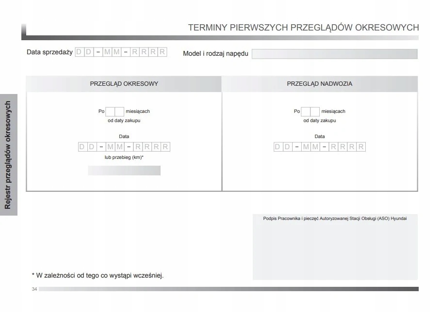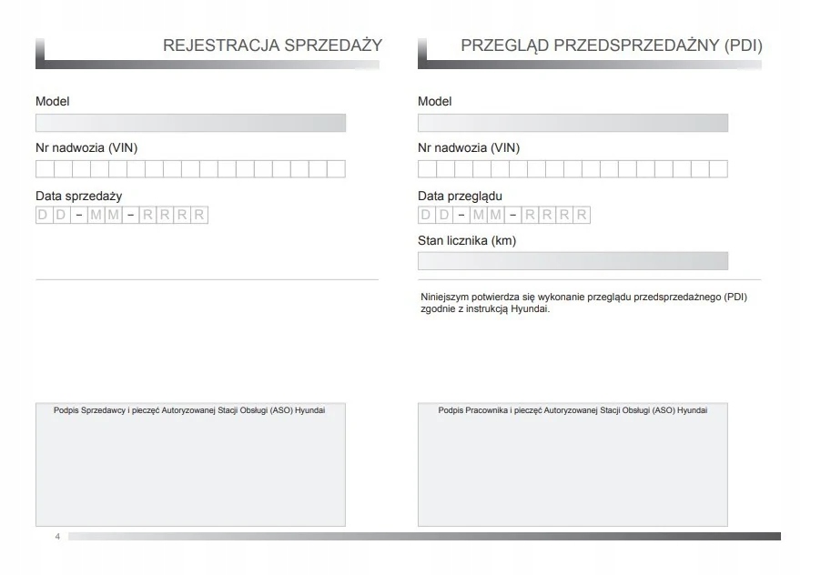 Польская сервисная книжка Hyundai за 2018 год