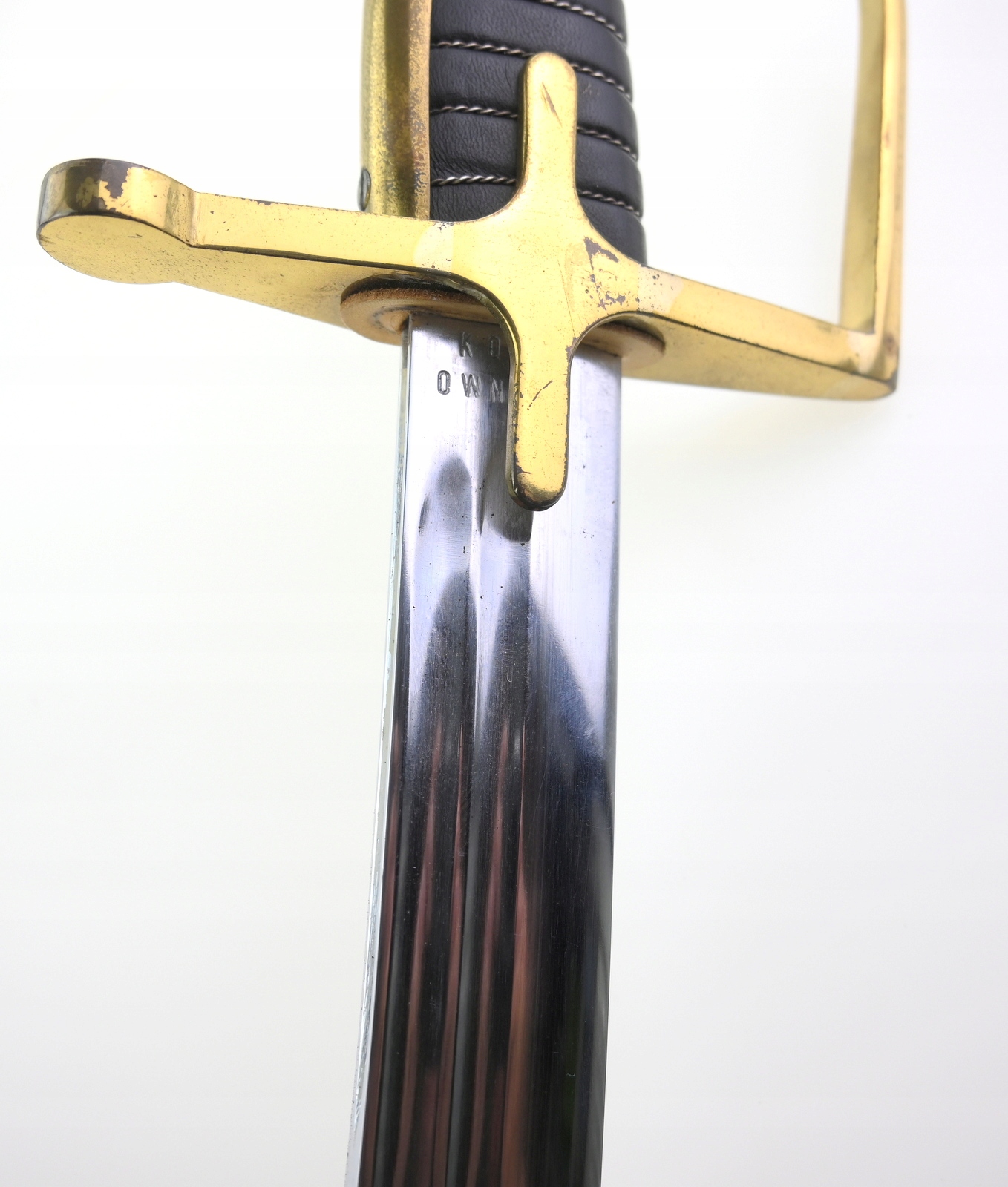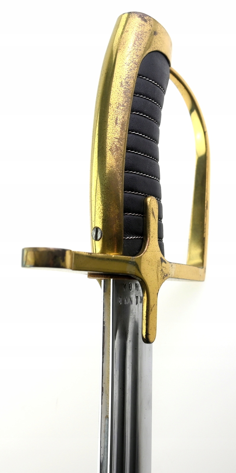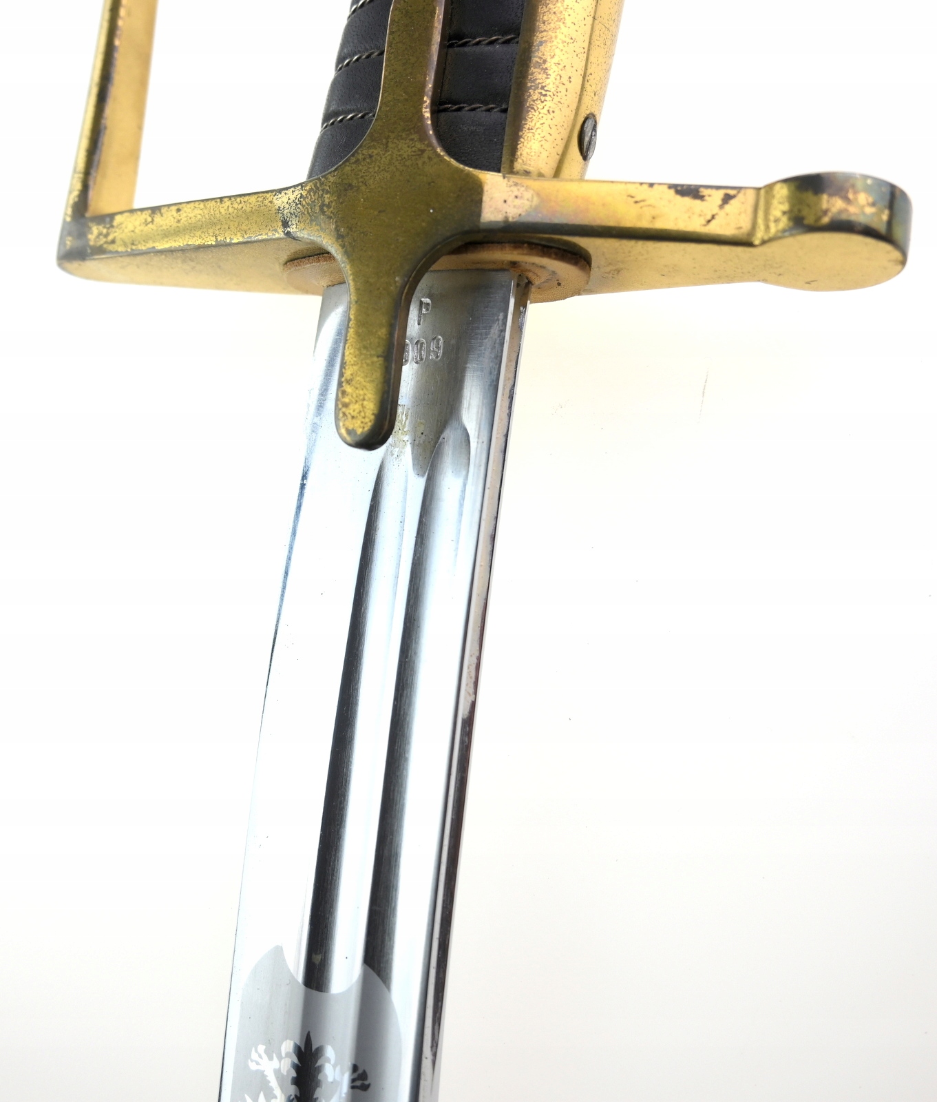 Лук латунный, односекционный клинок, два желоба, выгравированная надпись ЧЕСТЬ И РОДИНА и орел на фоне корона снаружи, подписи; WP 96009, KOW OWNTW, ножны стальные, чок в рабочем состоянии, состояние как на фото, видимые следы использования