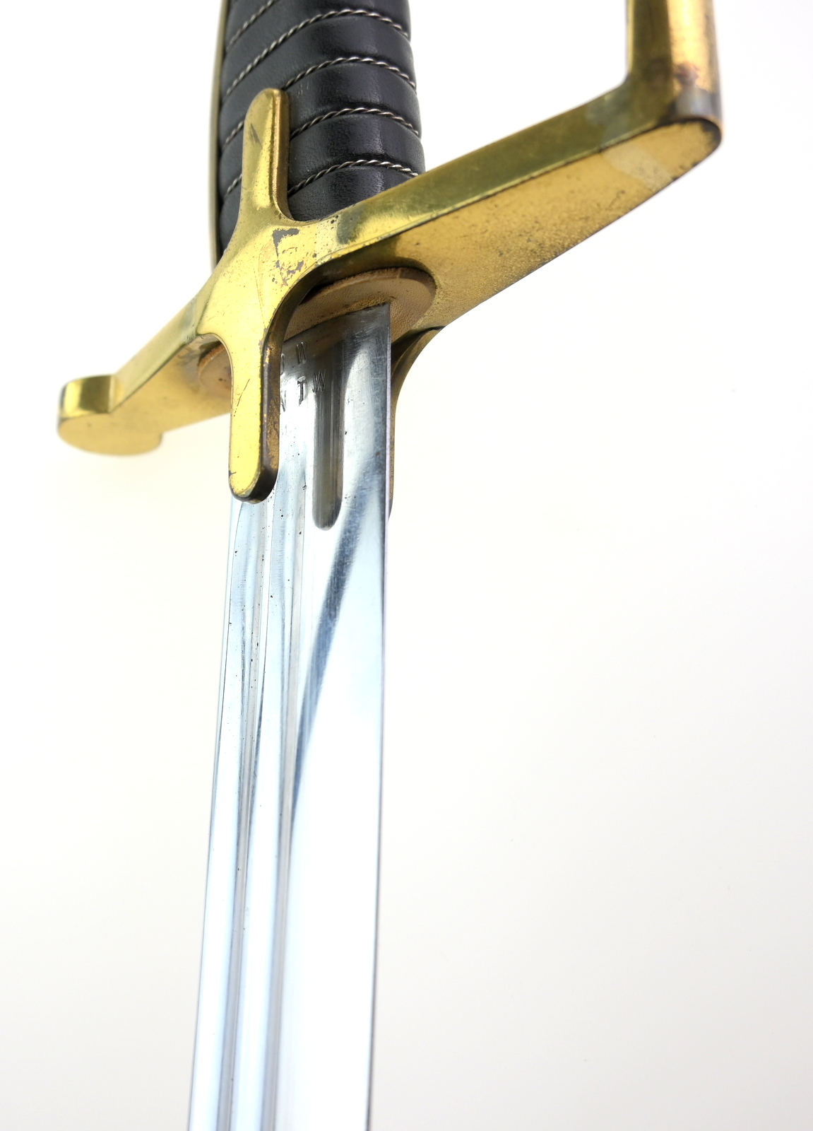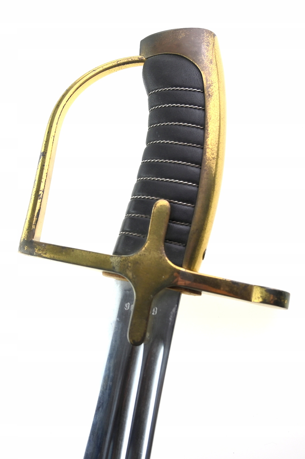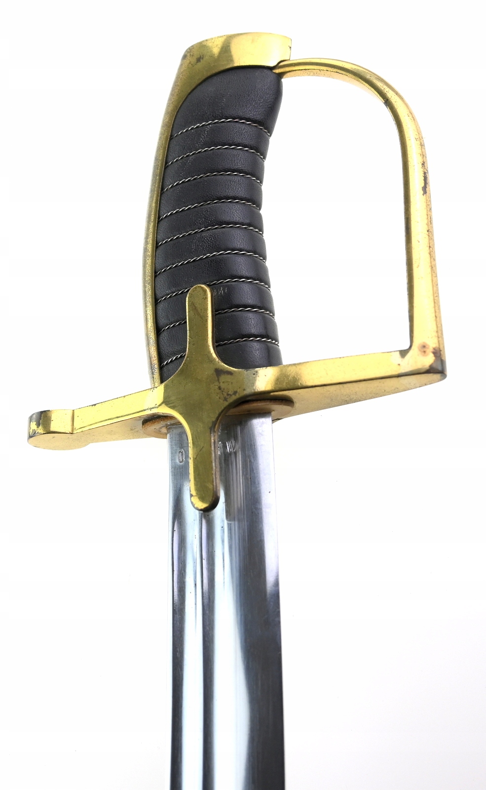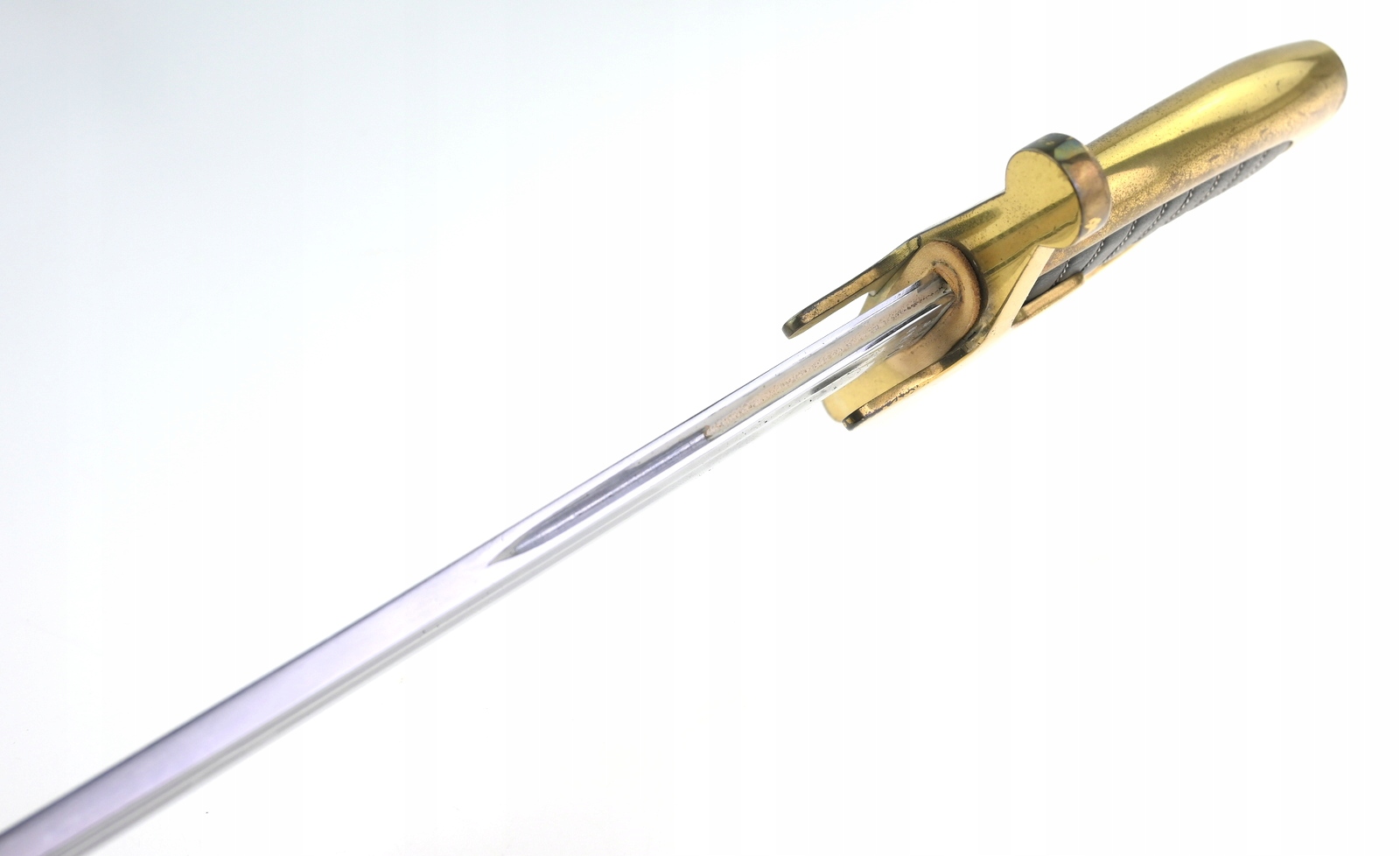 Лук латунный, односекционный клинок, два желоба, выгравированная надпись ЧЕСТЬ И РОДИНА и орел на фоне корона снаружи, подписи; WP 96009, KOW OWNTW, ножны стальные, чок в рабочем состоянии, состояние как на фото, видимые следы использования
