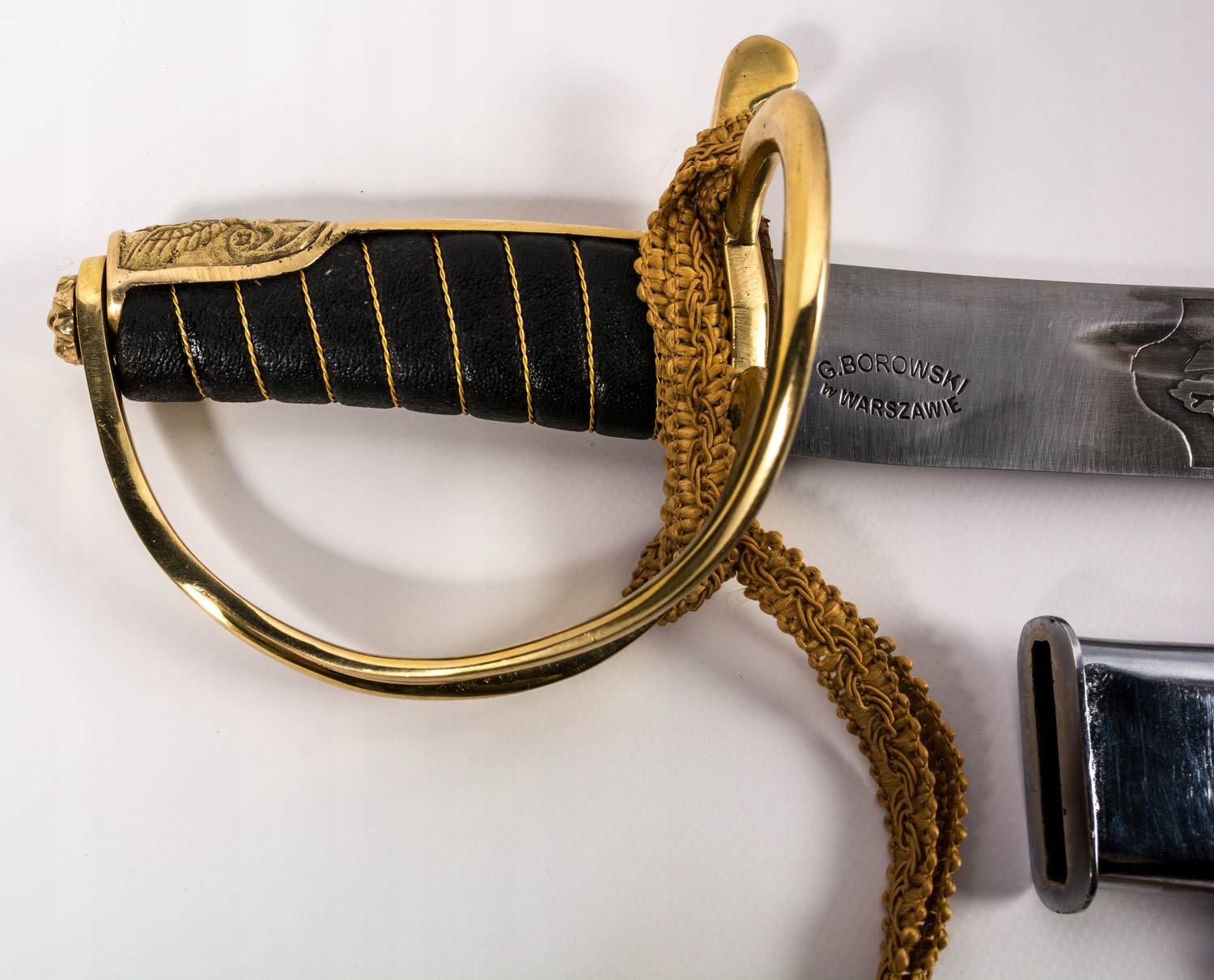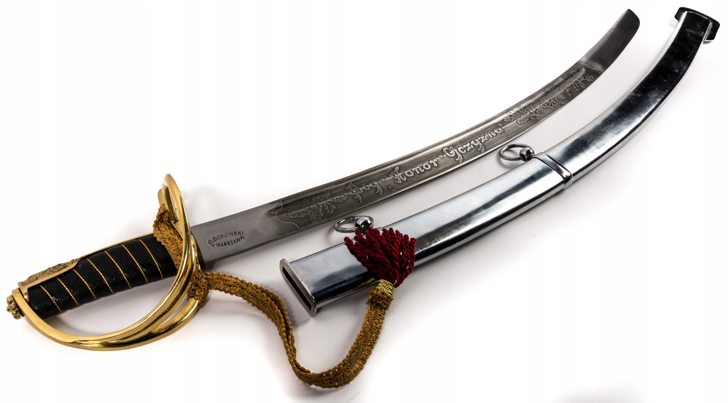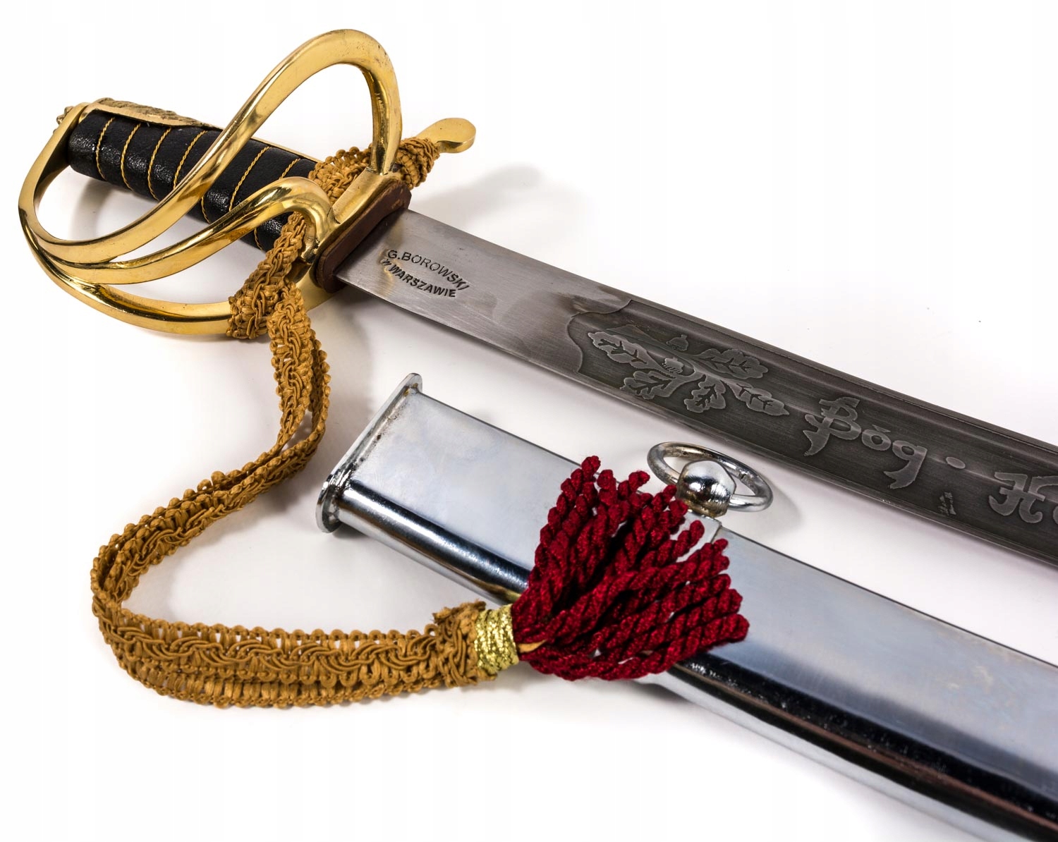 Деревянная ручка, покрытая черной кожей, видимые наклонные канавки, заполненные латунными скрученными проводами, так называемые корпус. Ручка закрыта, латунь, корзина светильника. Esowy Jelec, Tiamplip. Сталь -качественное стальное лезвие. Красивое пищеварение на внешней амфибии: Бога честь, отец. На внешней амфибии под базой, Поршни Габриэля Боровского Сиения: Г. Боровский | В Варшаве. На внутренней амфибии, получая толпу от офиса снабжения главной армии - опухоль. Декоративная стропа, привязанная к ручке из материала, золотая лента закончилась красной кисточкой - куча ниток. Влагалище, никелированное, с двумя кольцами и подвижными коллапсами, заканчивалось паллетами. Стенд из фанеры, запятнанный, наполовину опечаленный блеск. Двойная подставка, сабля и влагалище лежат отдельно. Посвящение может содержать логотип подразделения, полицейского листа и т. Д. Варианты доступны в «Купить вместе» выше описания.