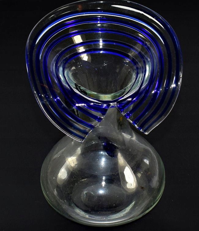 Прекрасная старая ваза- Польское художественное стекло -Дизайн 1970 -х годов. кобальт-тел.