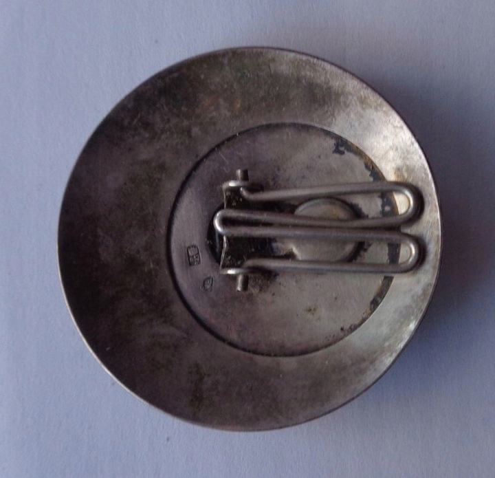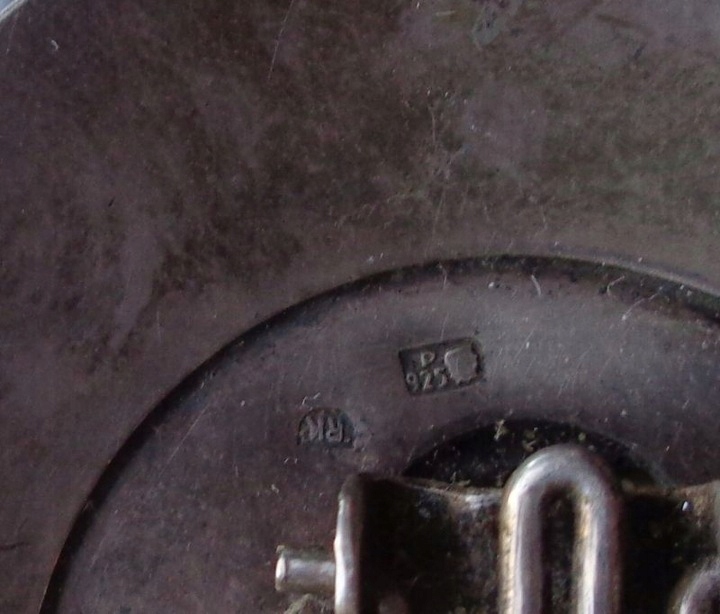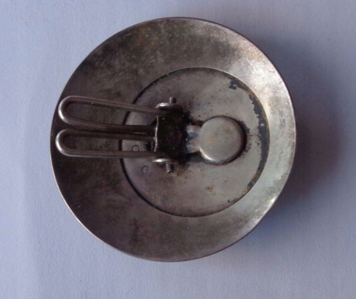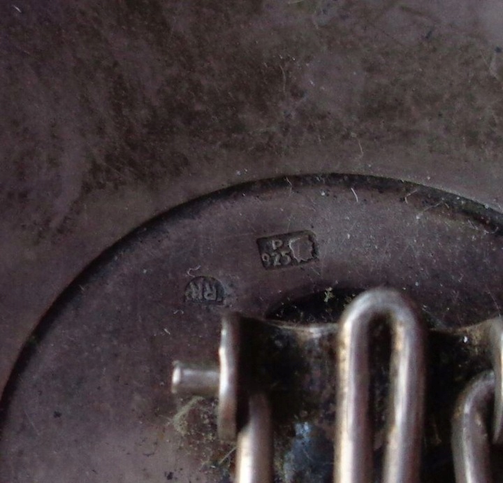 Красивый, элегантный зажим из серебра 925 пробы производства Польши, изготовленный после 1986 года. Клип был изготовлен ювелиром из Познани, о чем свидетельствует подпись на нем. Экспонат имеет круглую форму и форму. Внешняя часть клипсы гладкая. В центральной части по кругу красивая сложенная аппликация. Застежка-клипса, вероятно, оригинальная. Экспонат не чистился и не трогался, имеет старую патину. На фотографиях видны серебряные наконечники и инициалы ювелира. Всем рекомендую.