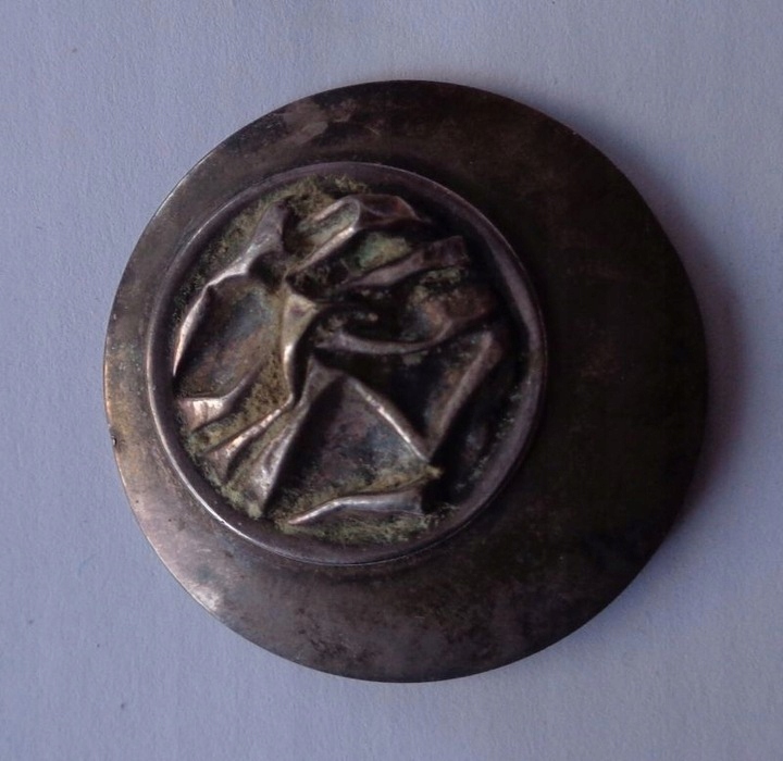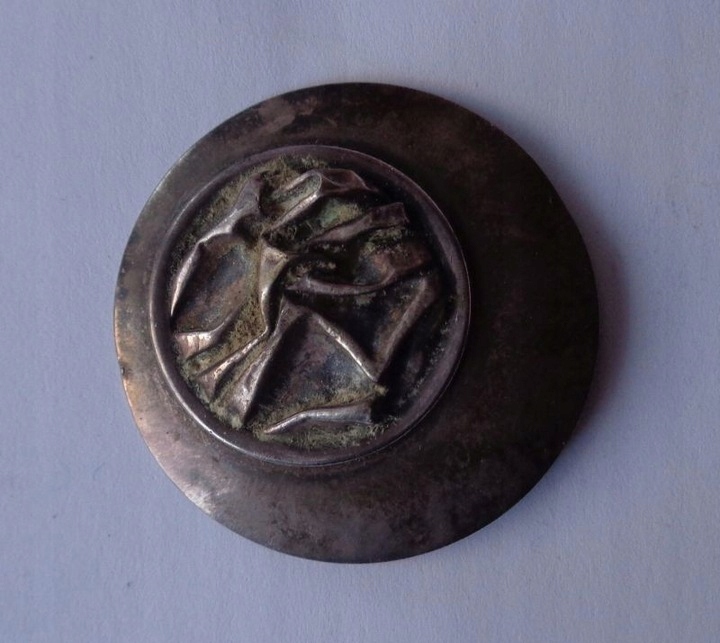 POLSKA SREBRNY SYGNOWANY ELEGANCKI CIEKAWY KLIPS Z 1986 ROKU-ZOBACZ
