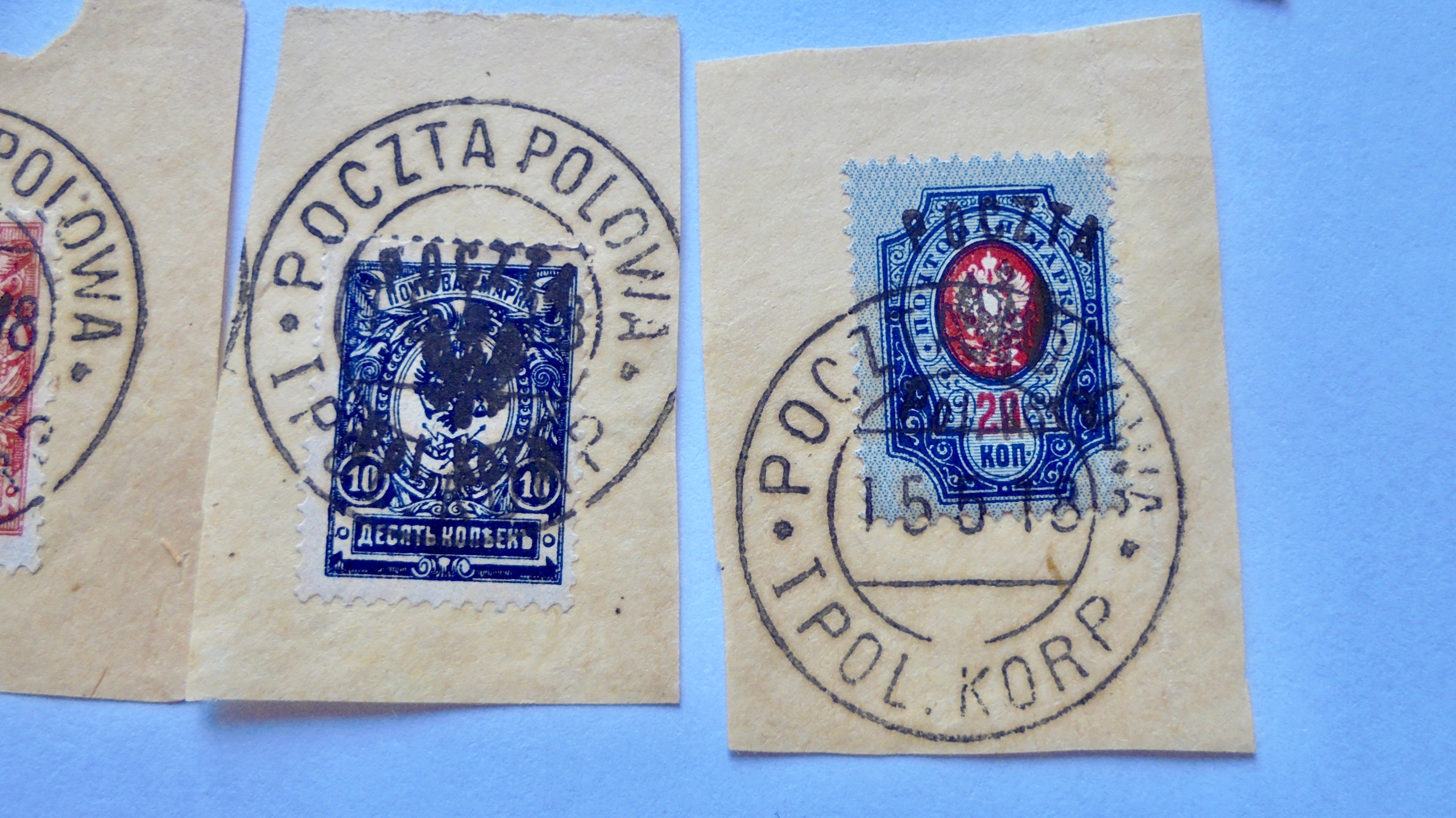 Polska zestaw znaczków kasowanych z nadrukiem "Poczta Pol. Korp" stan dobry