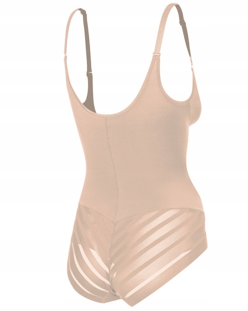 Боди под грудью с сеткой из материала высочайшего качества, отводящего влагу и обеспечивающего ощущение комфорта. Незаметны под одеждой благодаря бесшовной современной технологии обработки кромок INVISIBLE-LINE®. На ягодицах сексуальные прозрачные вставки. Гладкий торс из блестящего материала, который очень хорошо формирует талию и живот. Ремешки имеют инновационную застежку, являются съемными и регулируемыми, в подарок входит пара силиконовых ремешков. Задняя часть ягодиц обработана плоско, чтобы под одеждой ничего не было видно. Модель имеет хлопковую вставку в области промежности и регулируемую застежку на крючки.