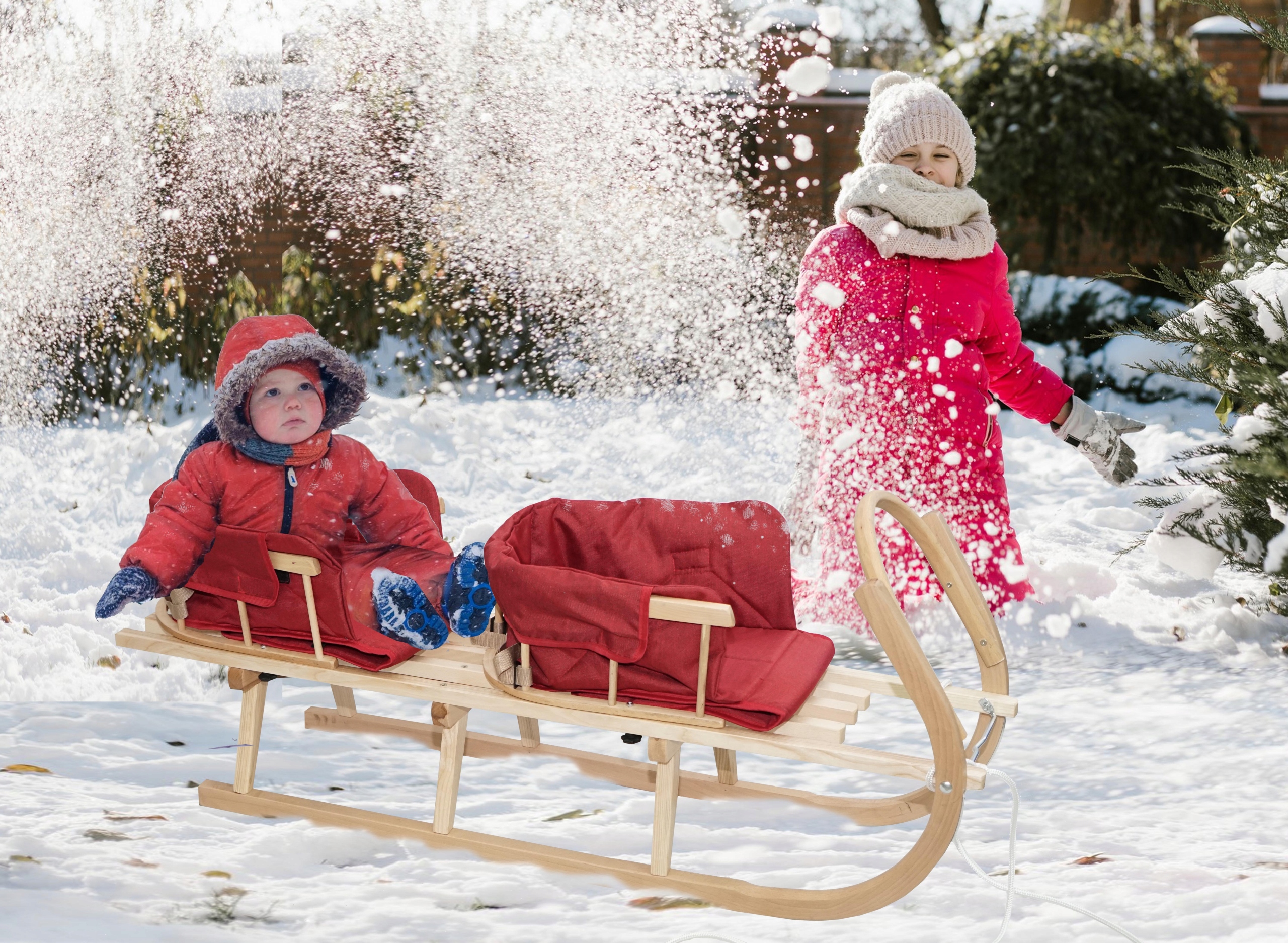 Классические деревянные санки DUO с матрасами