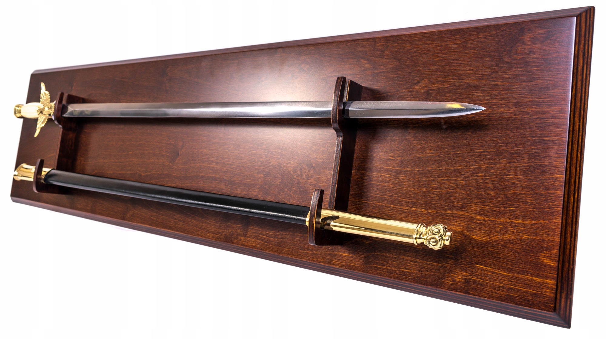 Красиво сделанная сабля, эффективно смотрит на прикрепленную таблицу. Таблица из фанеры, окрашенная и лакированная для коврика. В задней части стола два крючка, чтобы повесить на стену. Работа польского мастера для презентации белого оружия.