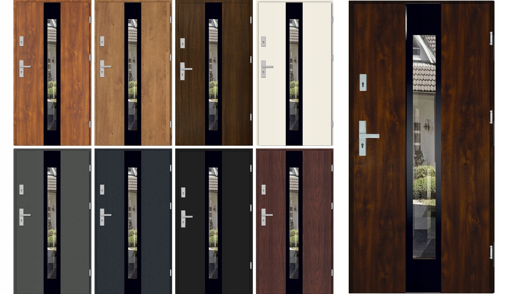 • двери из листового металла, покрытые декоративной пленкой ПВХ в тон оконных рам,
