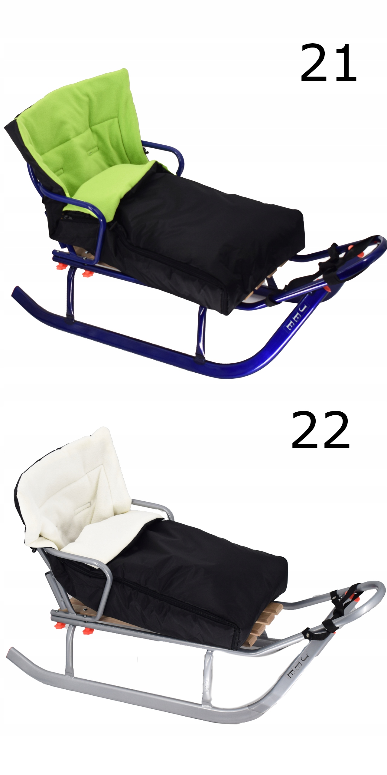 Польські металеві сани JEE + СПИНКА + спальник різних кольорів
