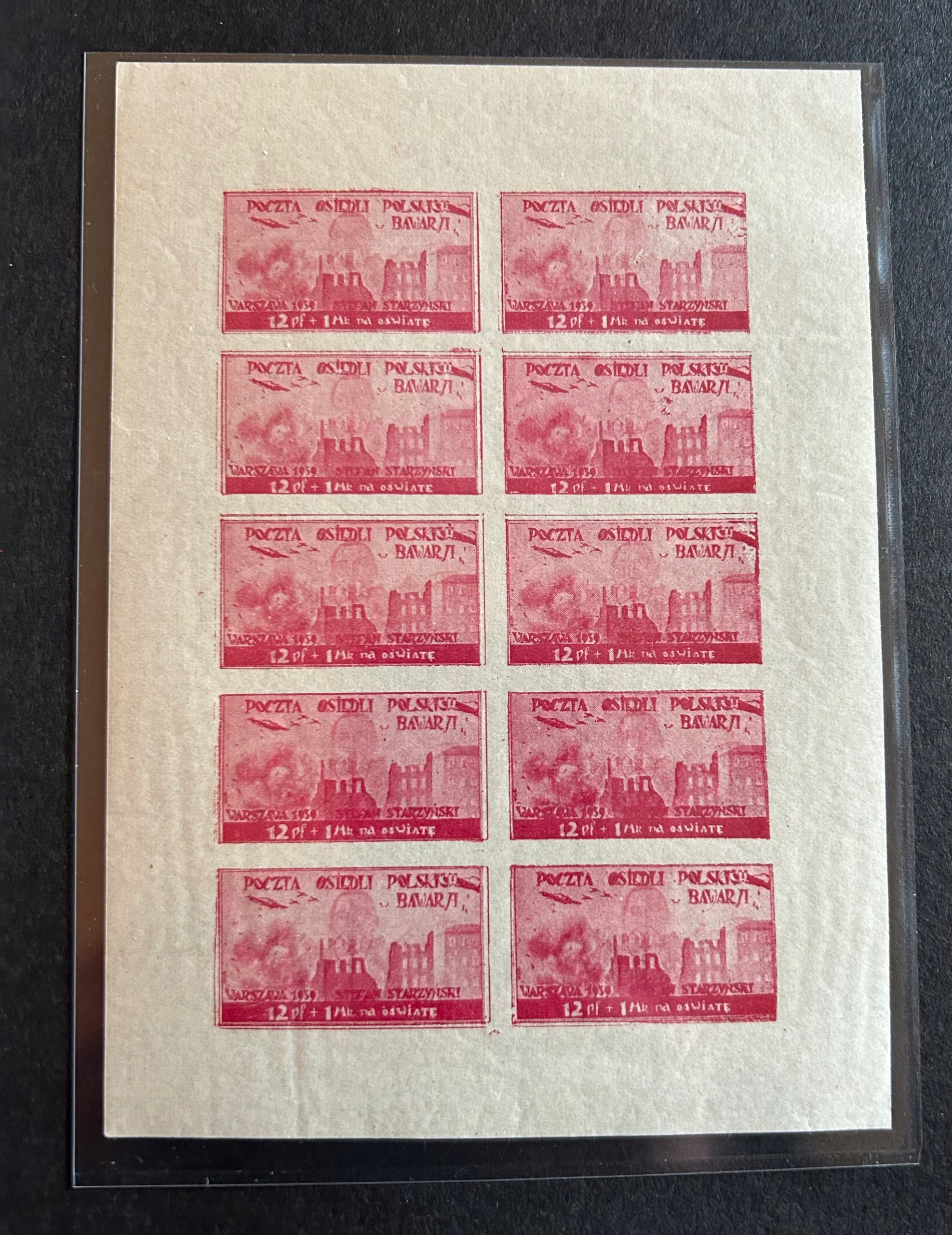ПОЛНЫЙ ЛИСТ/БЛОК СТОИМОСТИ FI 1 A** NZ - ИЗДАНИЯ ПОЛЬСКИХ ПОСЕЛЕНИЙ В БАВАРИИ, РЕДКИЕ, ЖЕЛАЕМАЯ ЦЕННОСТЬ, ОТЛИЧНОЕ СОСТОЯНИЕ, GWR, СТОИМОСТЬ В КАТАЛОГЕ - FISCHER ТОМ II 2022 - 3000 ЗЛЫХ - СТРАНИЦА 366 ( 10 x 300 злотых)