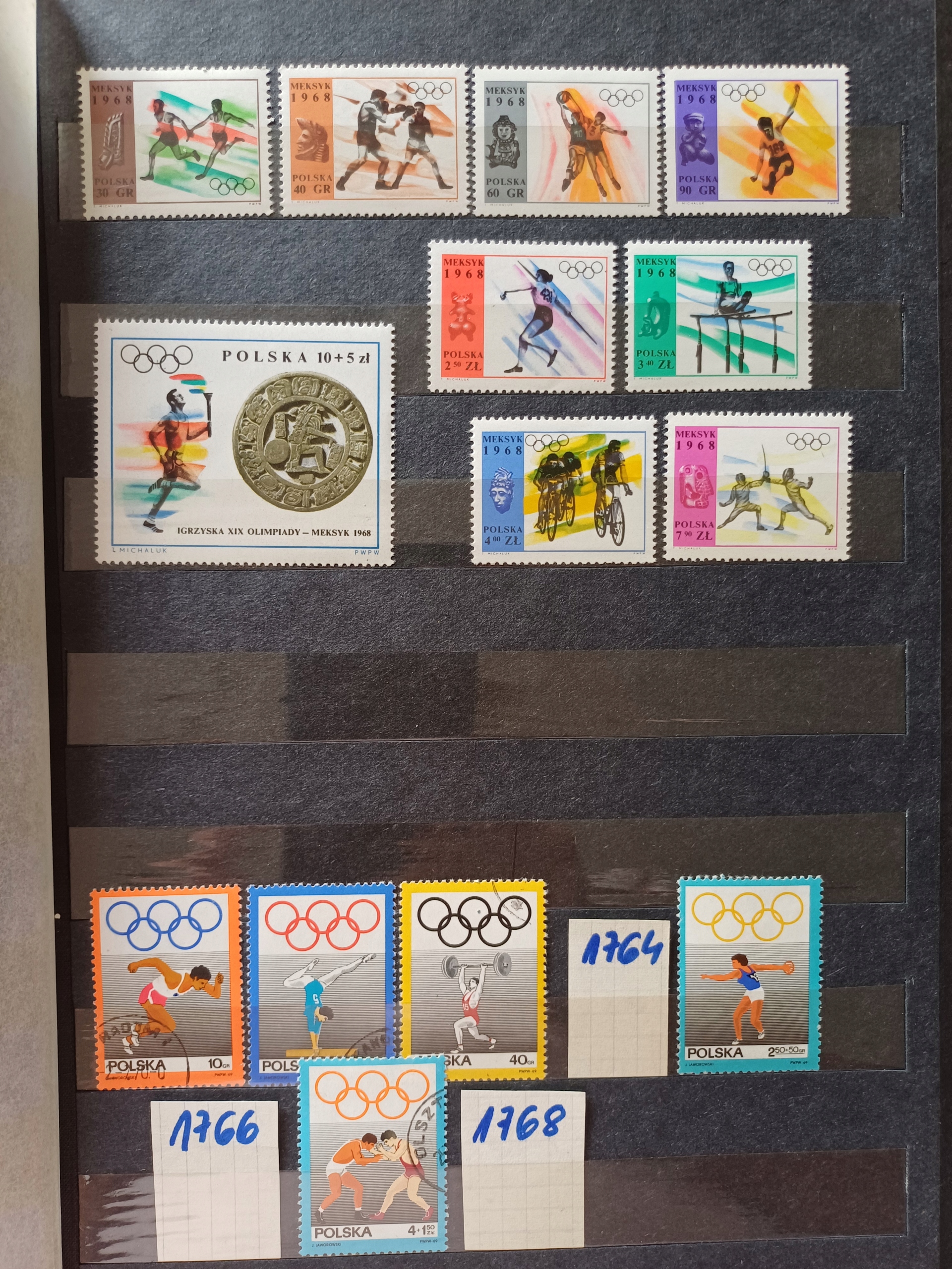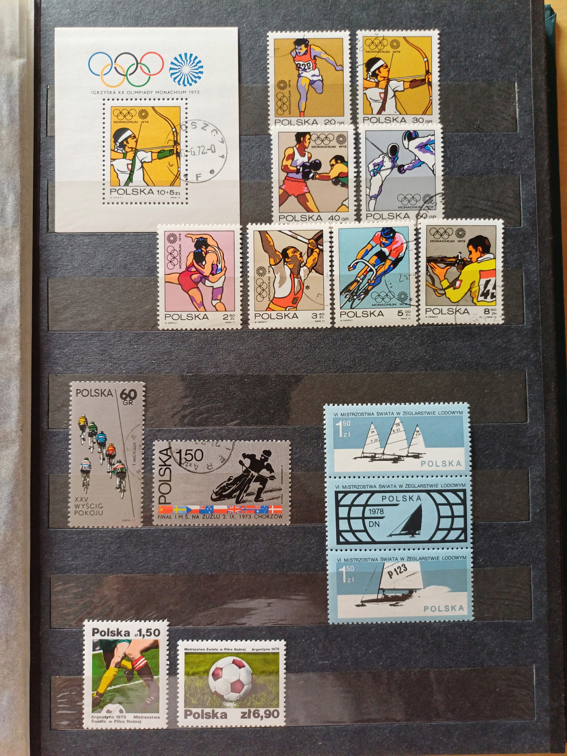 Класс с польскими марками 1957-1984 годов. Тема коллекции – спорт. В кластере есть как штампованные, так и чистые марки, в очень хорошем состоянии, почти все с клеем. Коллекция состоит из 26 полных серий, 2 из которых отсутствуют (номера недостающих марок на фотографиях этих серий). В комплект также входит буклет из 12 карточек, т.е. 24 страниц. Коллекция 1970-х годов.