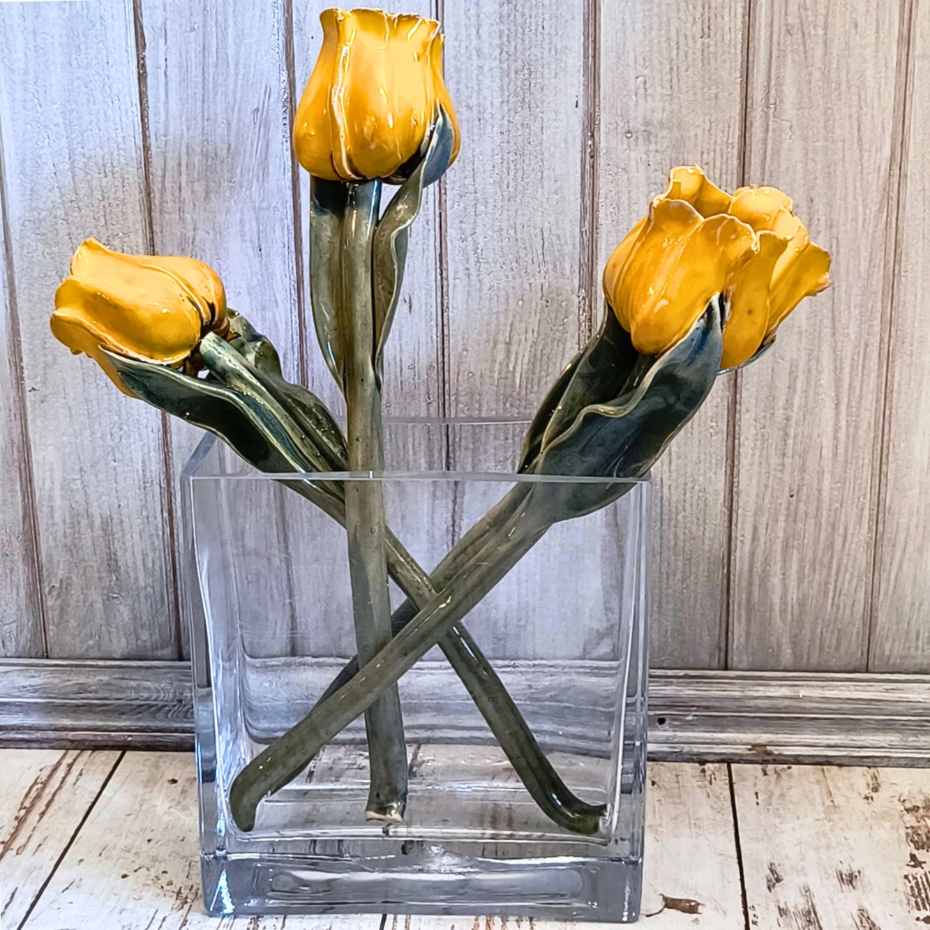 Польские ремесленники, сделанные из ручного керамического цветка 34 см - желтый тюльпан