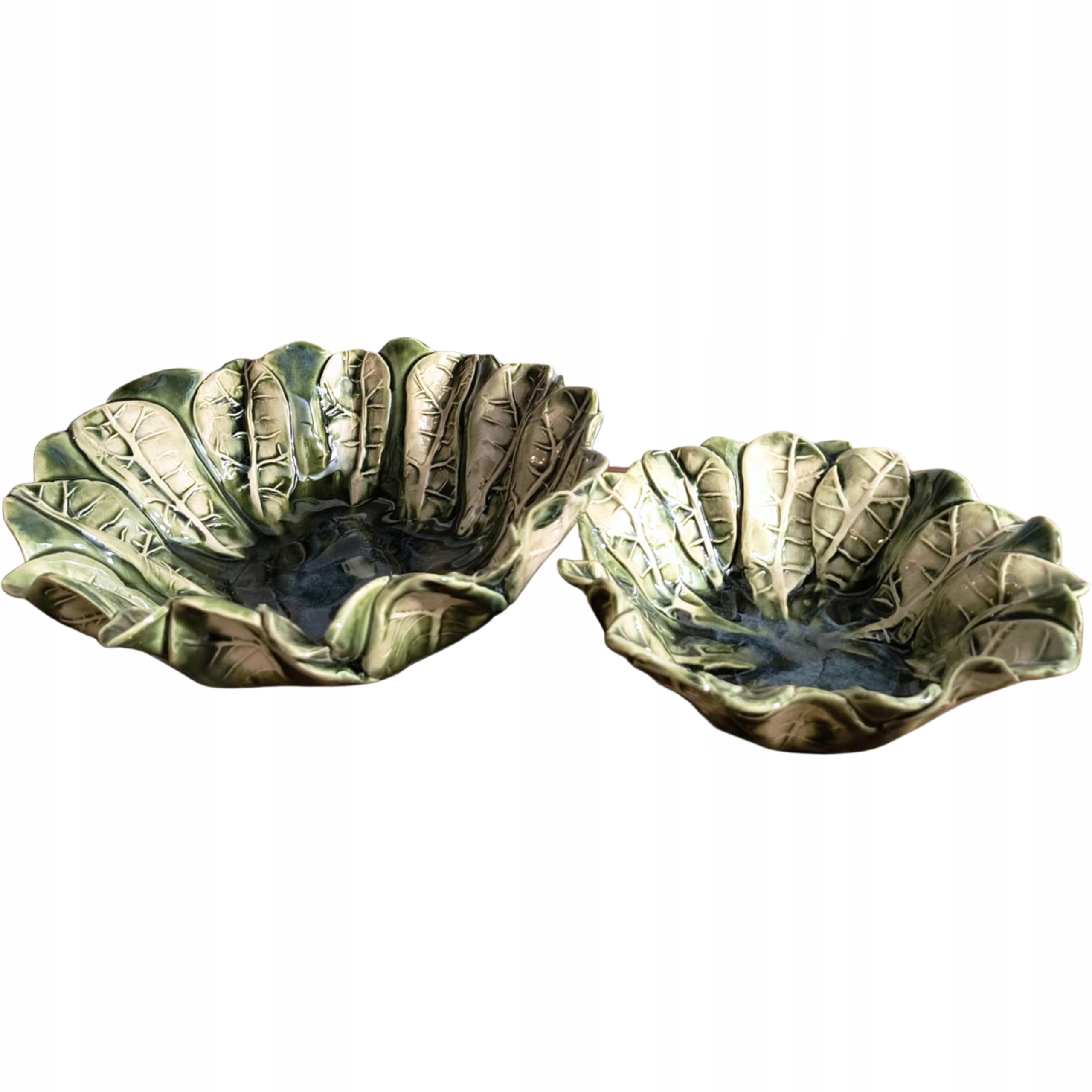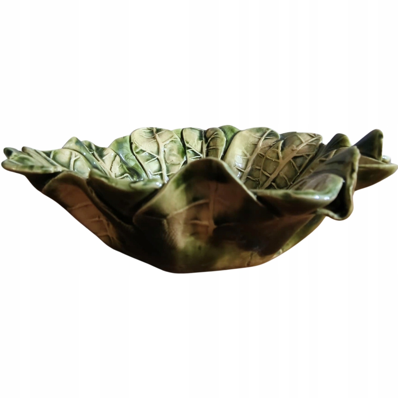 Польские ремесленные изделия вручную - керамическая чаша 750 мл - зеленые листья