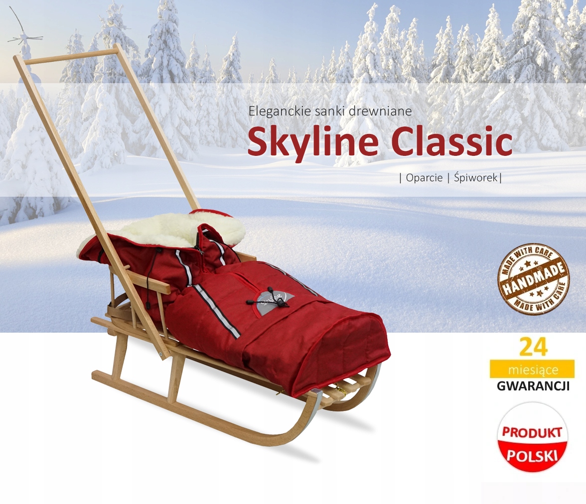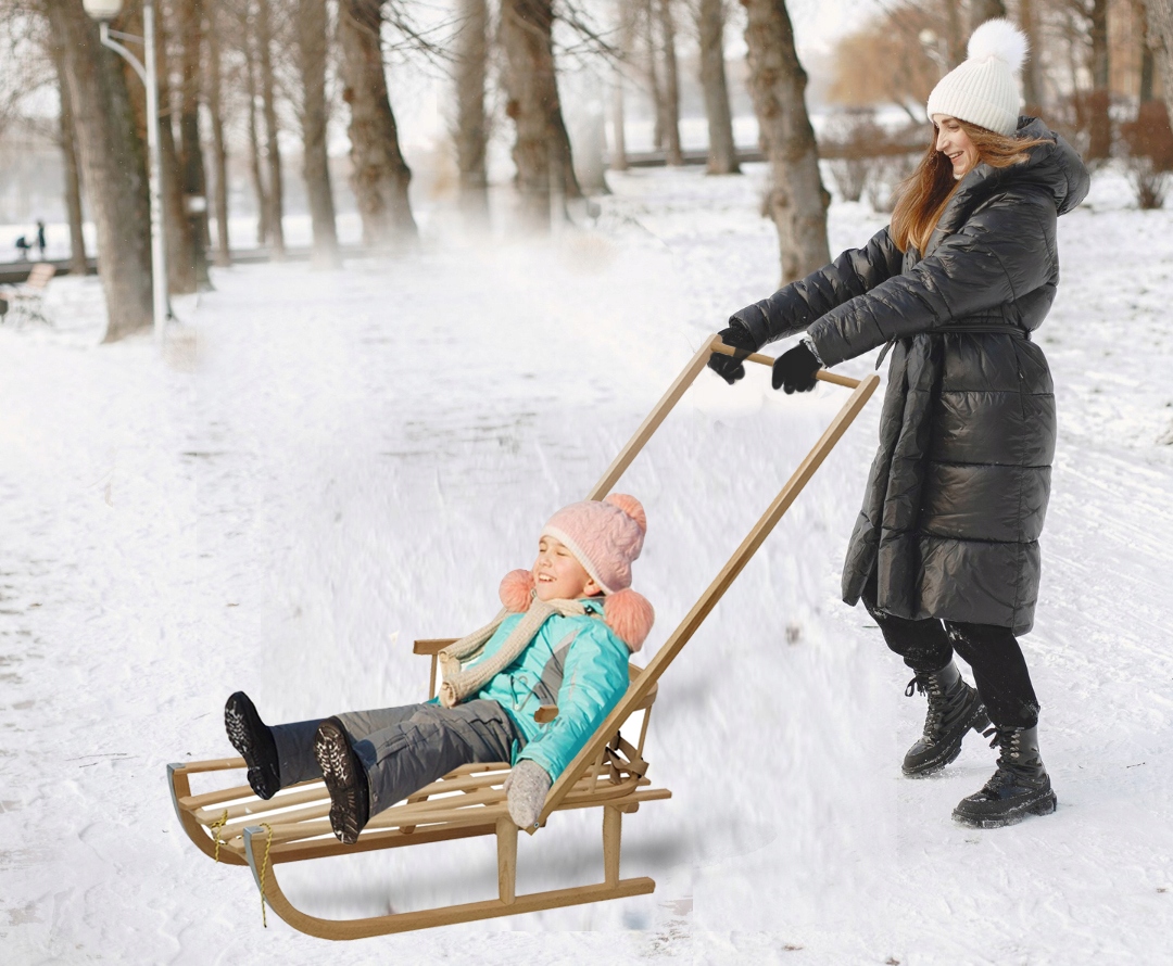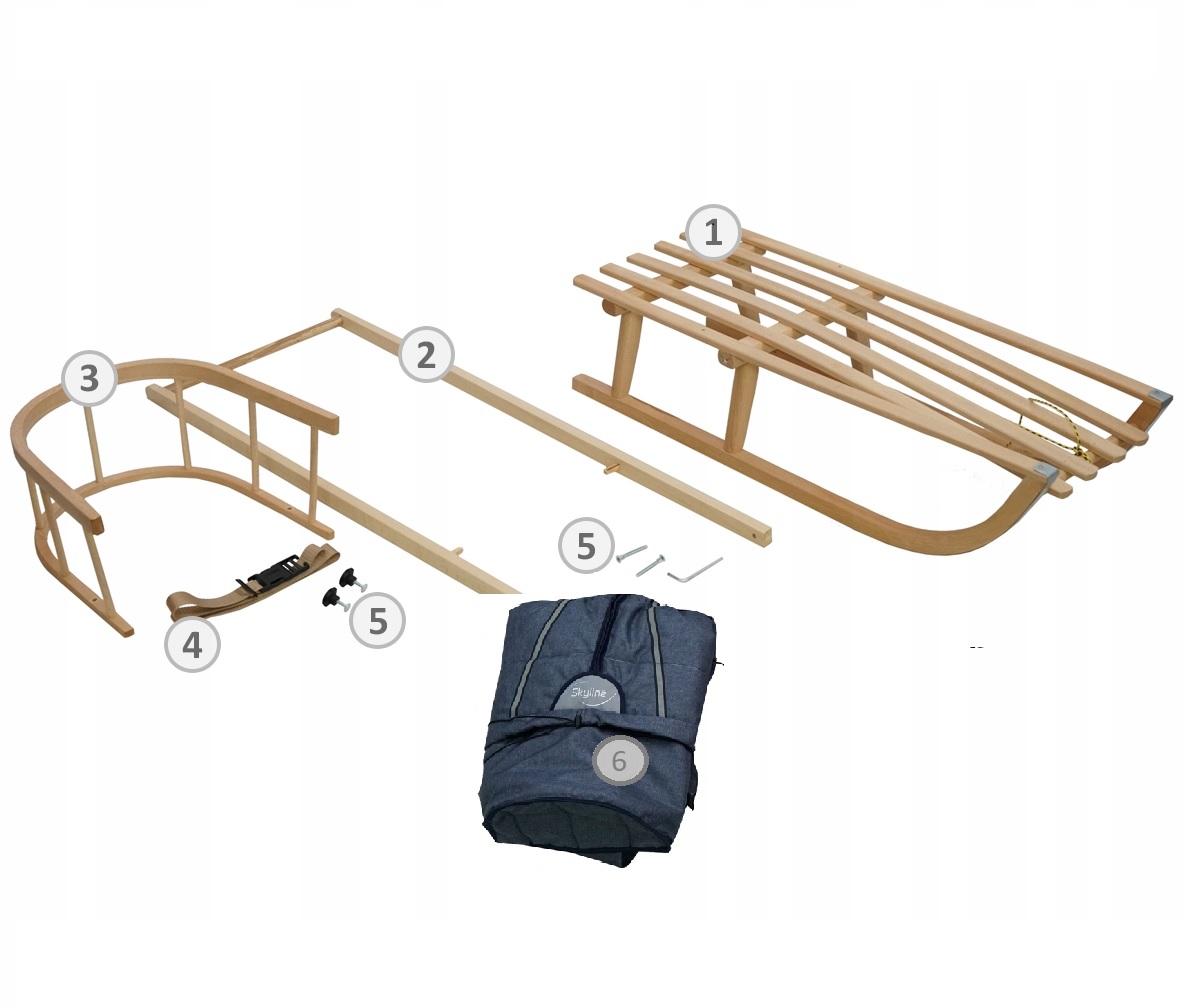 Польські сани, дерев'яна спинка, штовхач, спальний мішок