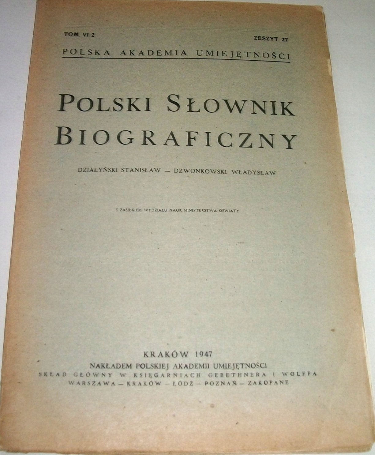 POLSKI SŁOWNIK BIOGRAFICZNY TOM VI/2 ZESZYT 27 /1947