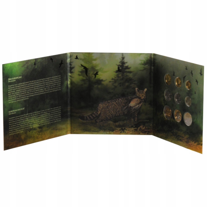 Польские монеты обращения «Европейская дикая кошка» - набор монет 1 грош - 5 злотых 2023 г.