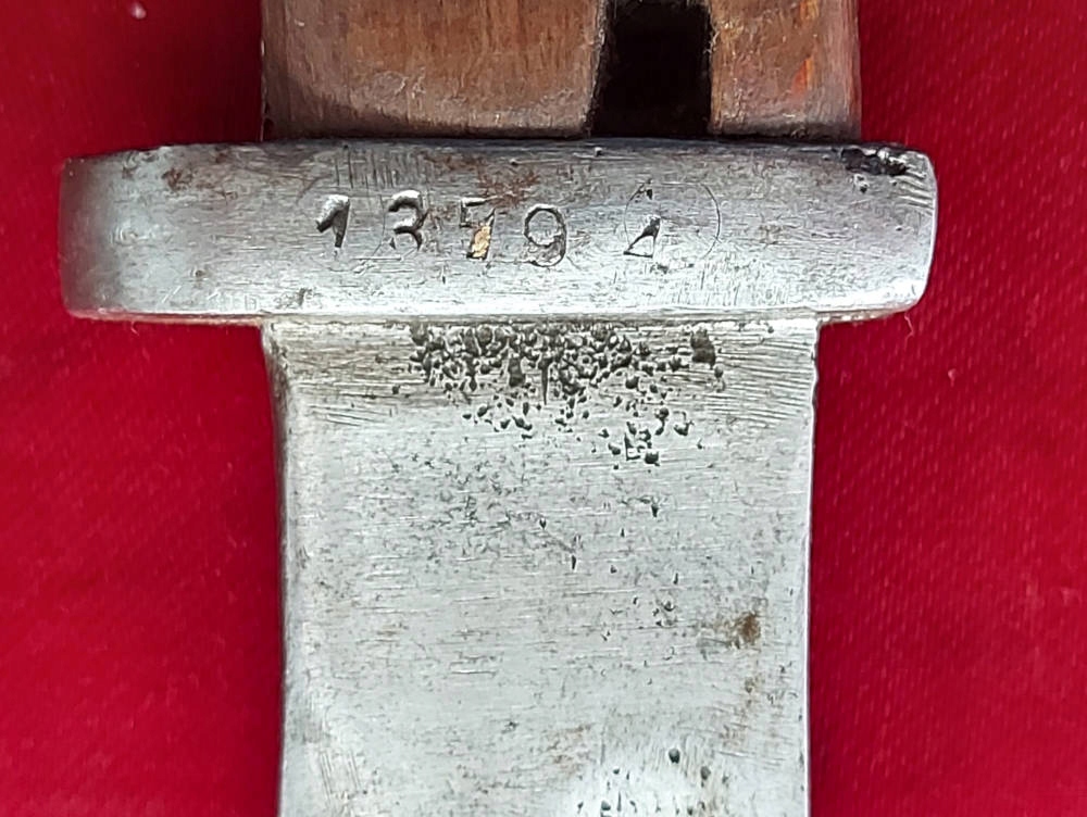 Товар виден на фотографиях. Штык тщательно отполирован, местами видны небольшие ямки. Накладки на ручки сделаны, а винты, на мой взгляд, могут быть оригинальными. Байонетный замок рабочий.