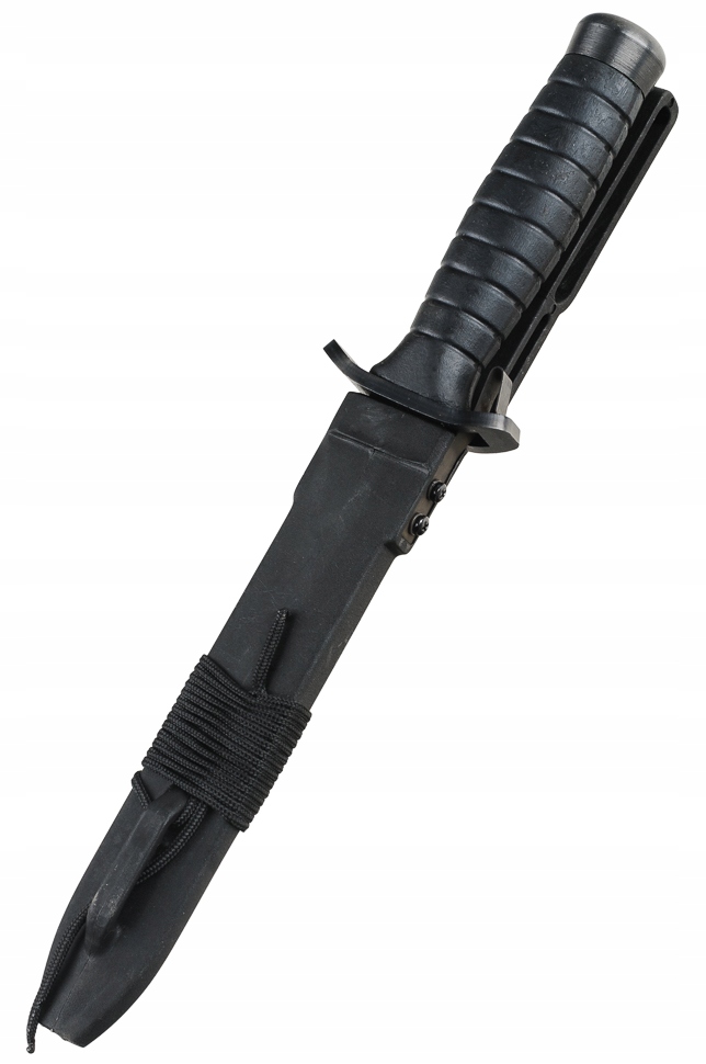 Современные ножны из прочного и гибкого материала. Оснащен широкой петлей для ремня. Дополнительная петля для фиксации ножа в специальном кармане форменных брюк. 93. Ушко в нижней части ножен позволяет прикрепить нож к снаряжению, бедру, ноге или предплечью. Скошенное дно влагалища с отверстием для слива воды изнутри. Веревка, намотанная на ножны, позволяет завязать нож или, в экстренной ситуации, использовать его, например, как шнурок. Инновационная система, защищающая нож от выпадения, обеспечивает автоматическую блокировку и немедленное вытягивание. Пружинная пластина проходит через отверстие в перекладине, фиксируя ее в ножнах. Замок помещается под большой палец, когда вы берете рукоятку, нажатие на нее освобождает нож.