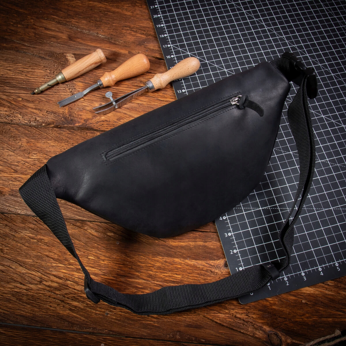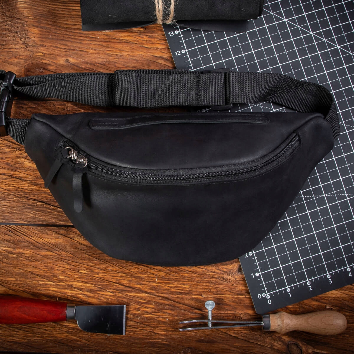 Польський чоловічий поясний рюкзак великий XL з натуральної зернистої шкіри Vintage Belveder NX19